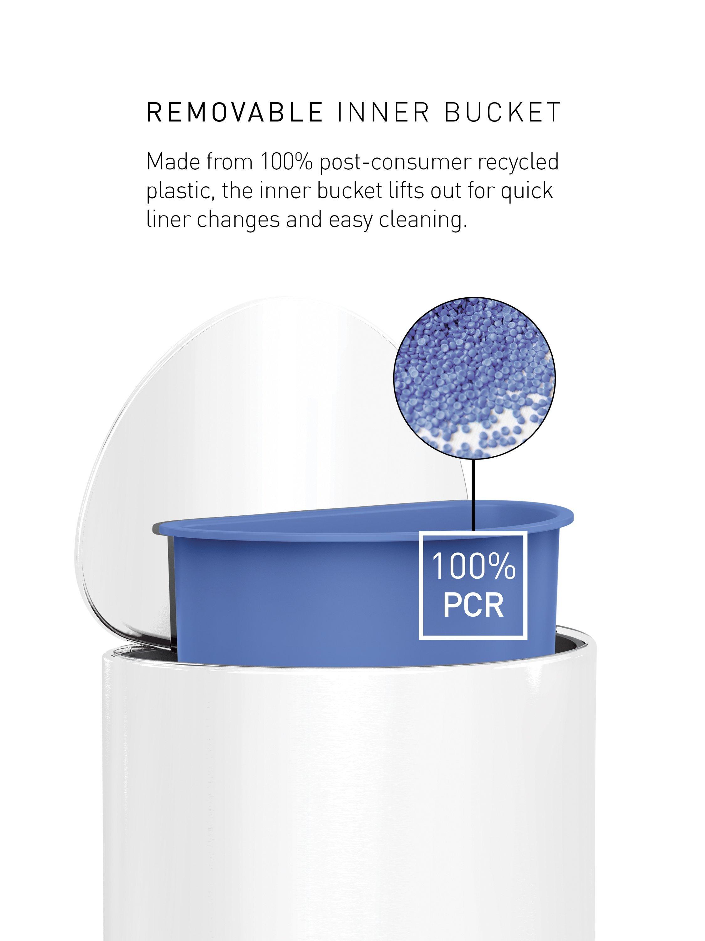 - Removable inner bucket: made from 100% post-consumer recycled plastic, the inner bucket lifts out for a quick liner change and easy cleaning