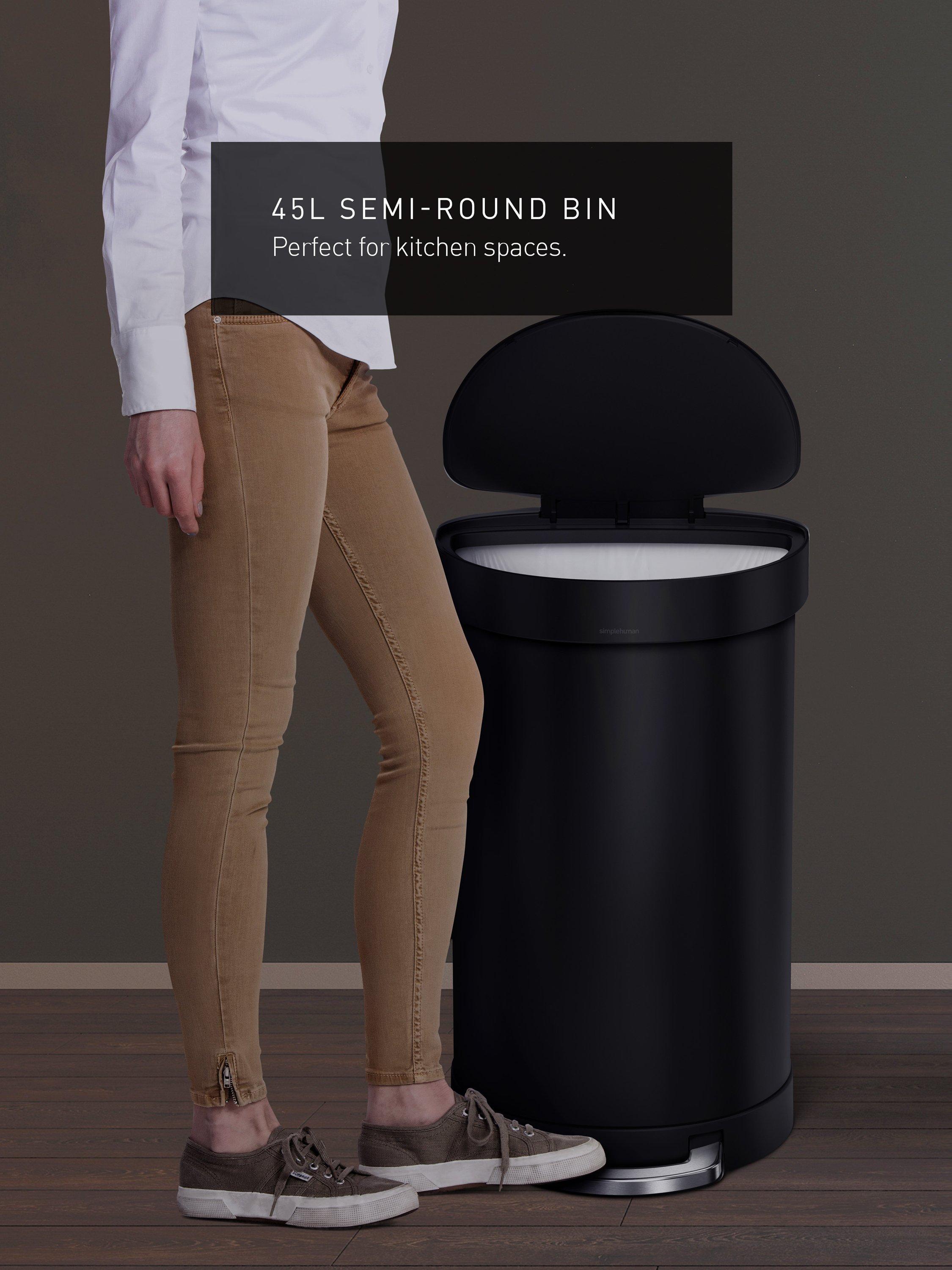 SimplehumanSemi-Round Pedal Bin, Black, 45L