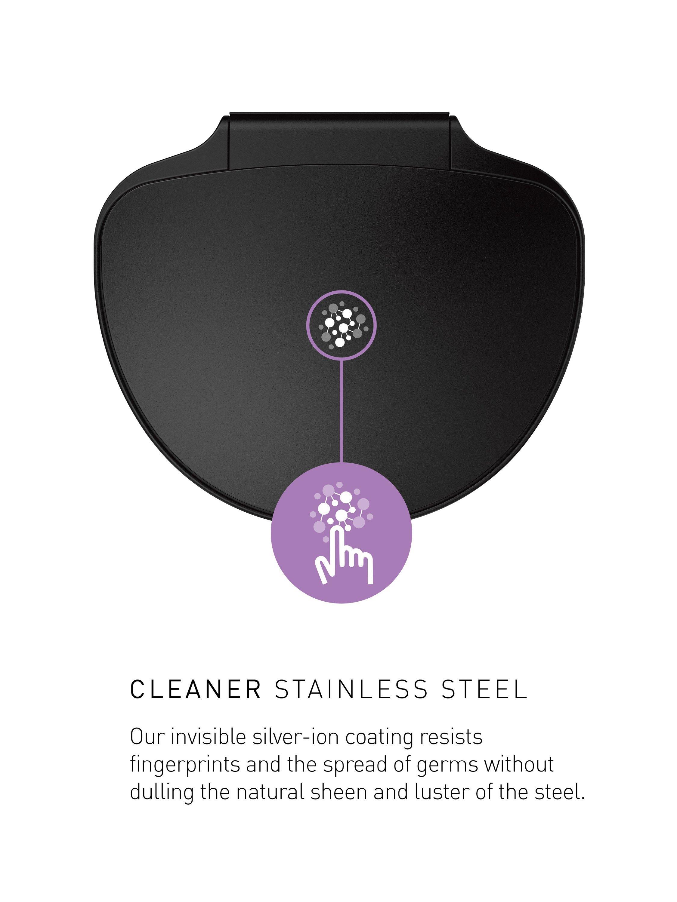 The liner rim lifts up for easy access to the liner, then closes to grip and keep it neatly out of sight. The strong steel pedal is built to last, and "lid-shox" technology ensures a smooth, silent close every time.