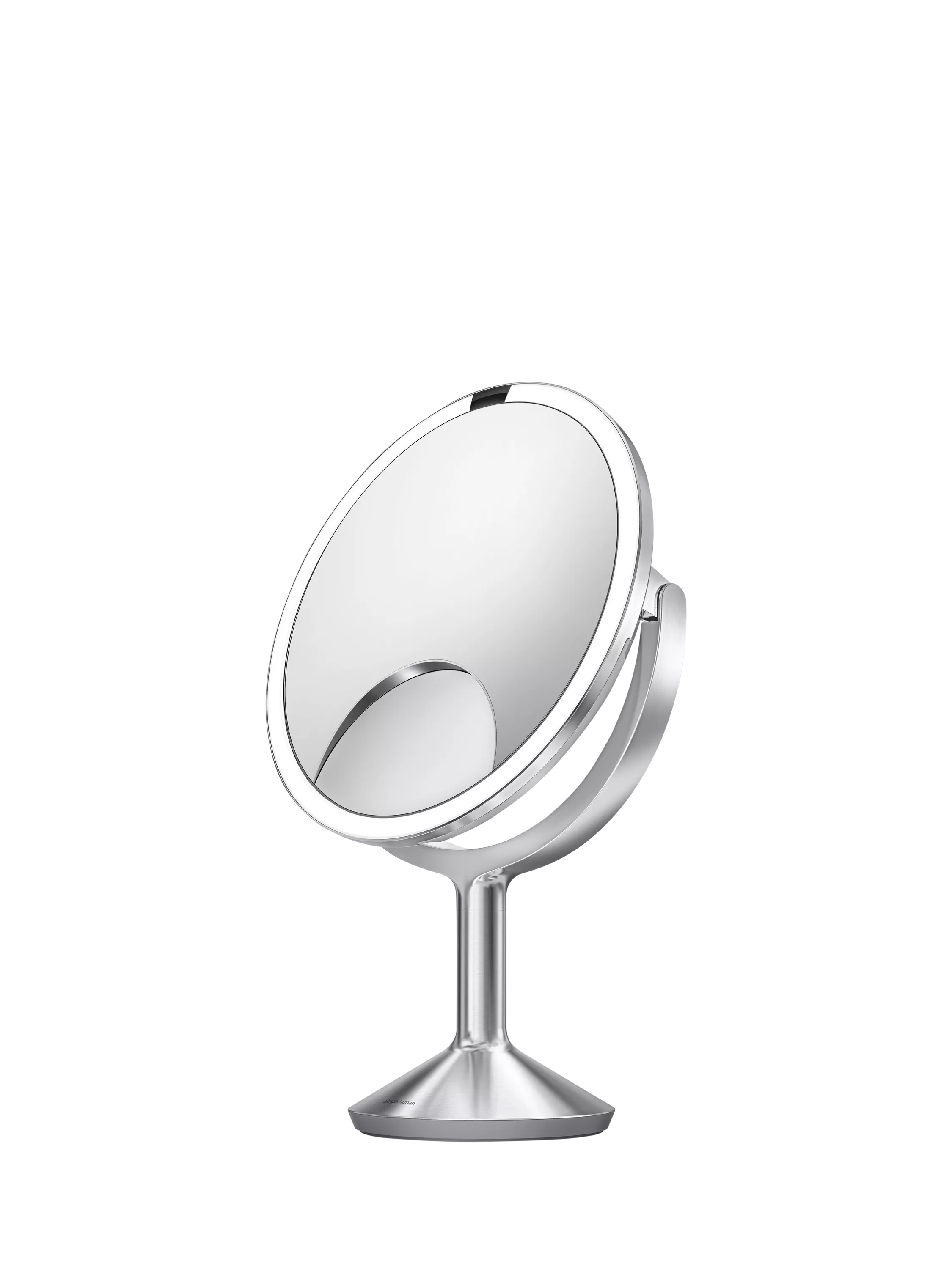 The simplehuman sensor mirror trio max is like having three mirrors in one. One side is 5x magnification so you can view your entire face in exceptional detail. And with a double-tap of the touch bar, it automatically flips to the other side where you get a 1x true view with a 10x window for detail work like tweezing or applying eyeliner, eye makeup and lipstick application.