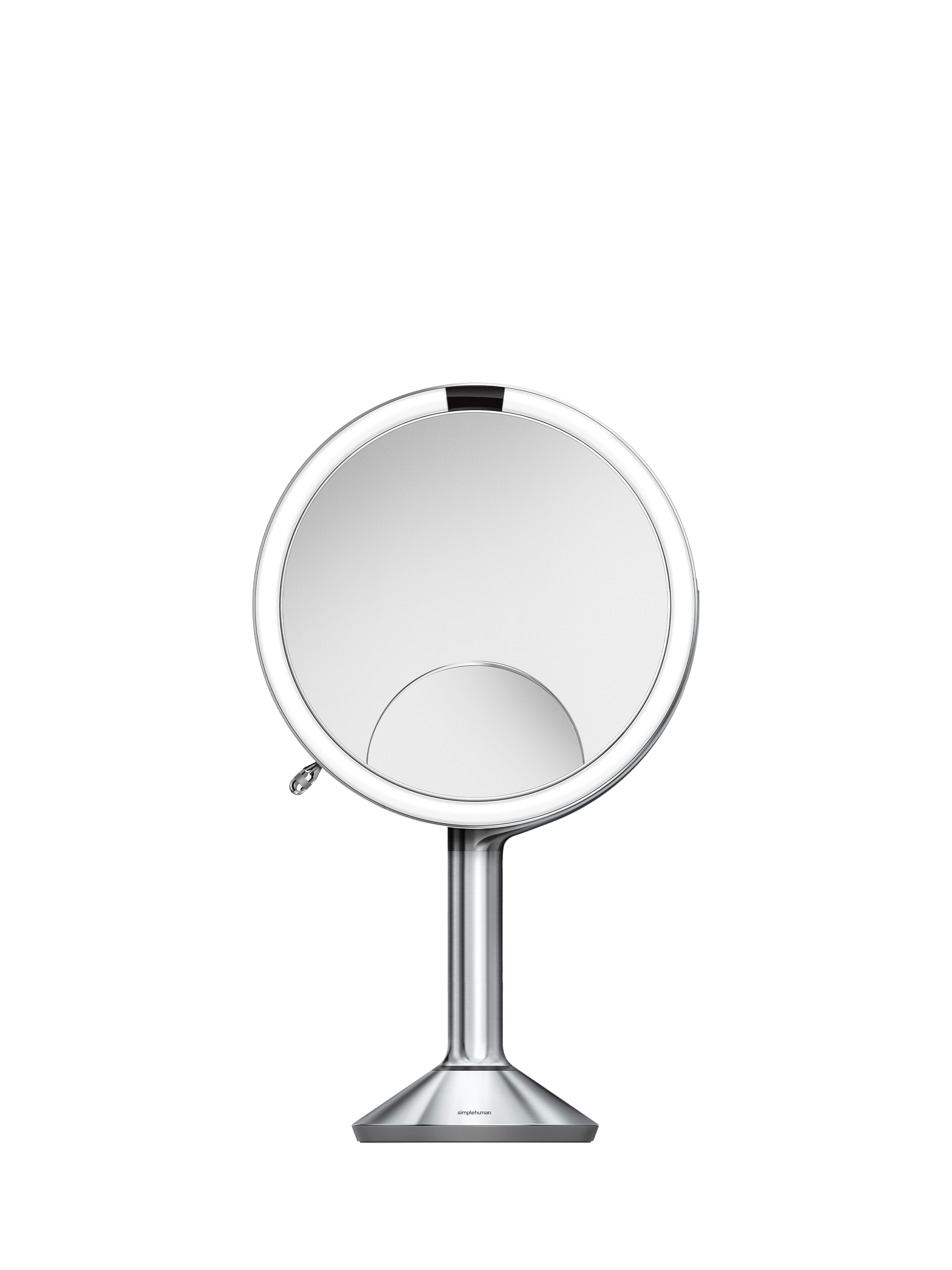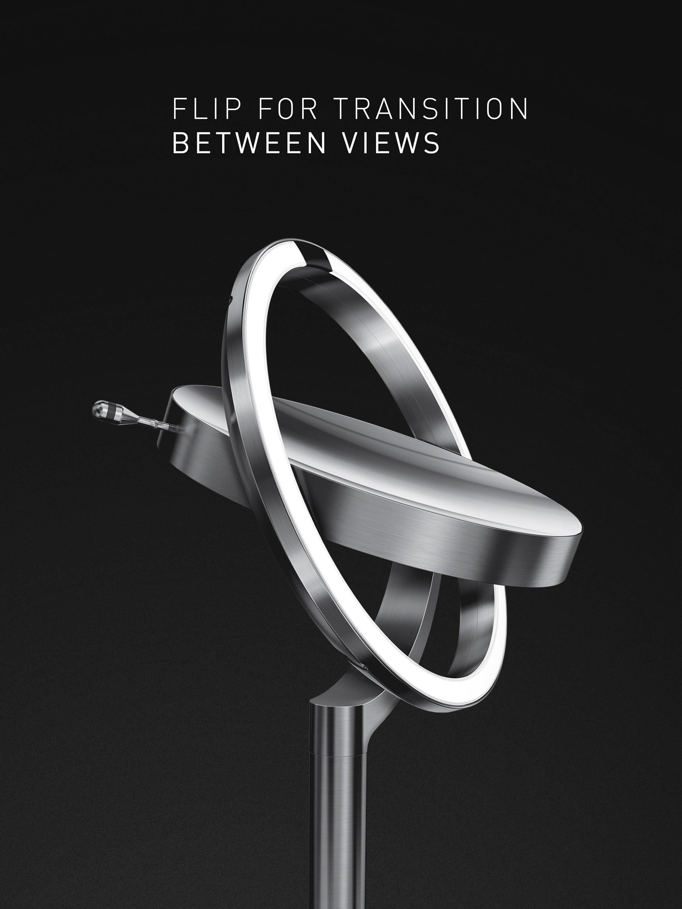 The simplehuman sensor mirror trio is like having three mirrors in one. One side is 5x magnification so you can view your entire face in exceptional detail. And with a quick, easy flip to the other side, you get a 1x true view with a 10x window for detail work like tweezing or applying eyeliner, eye makeup and lipstick application.