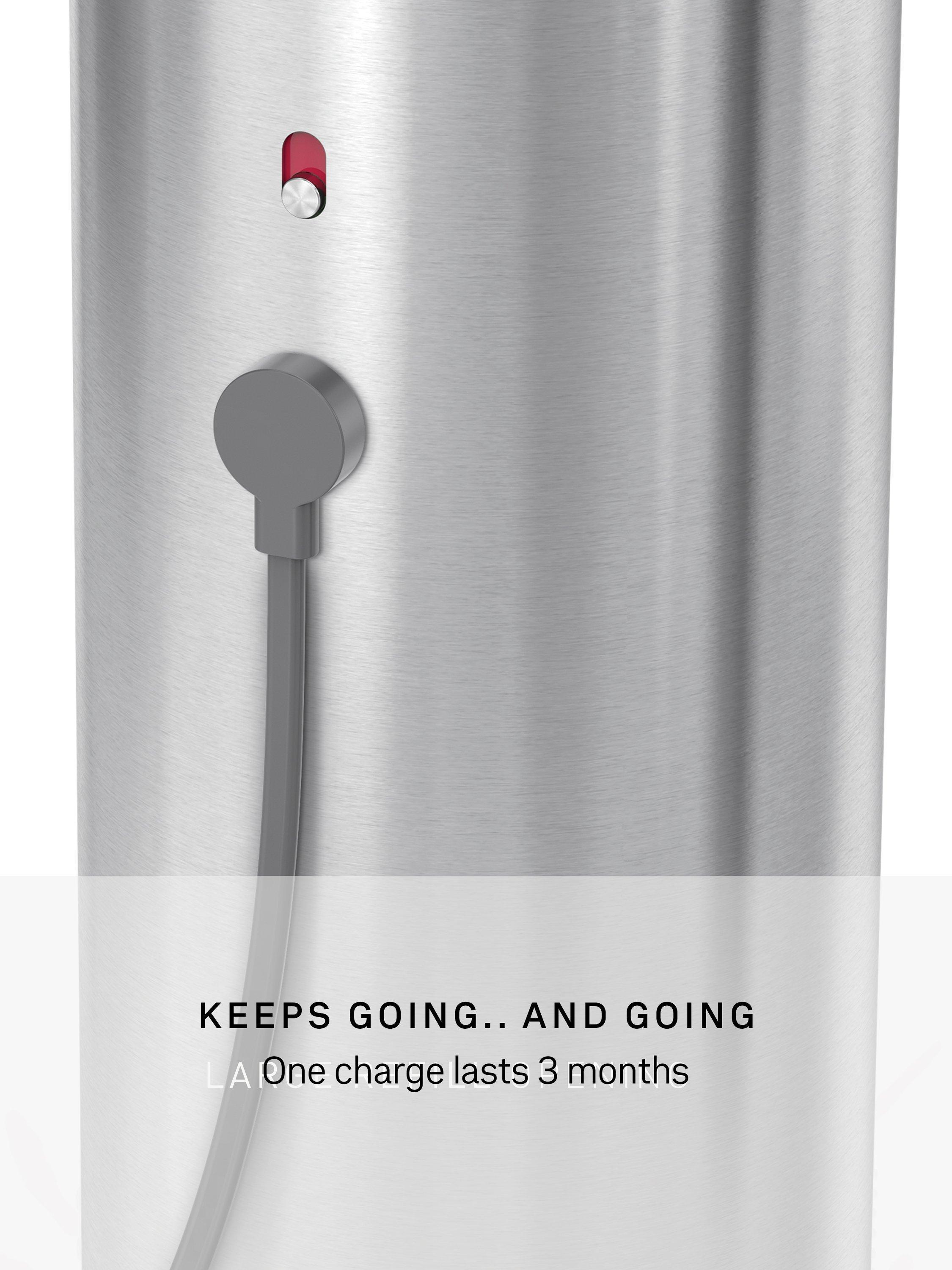To control the amount of soap, position your hand up close to the sensor for a little soap and farther away for more. A wide refill opening makes refills fast and easy, and a there's a QR code under the lid so you can reorder soap in a flash. It's also waterproof for easy cleaning.