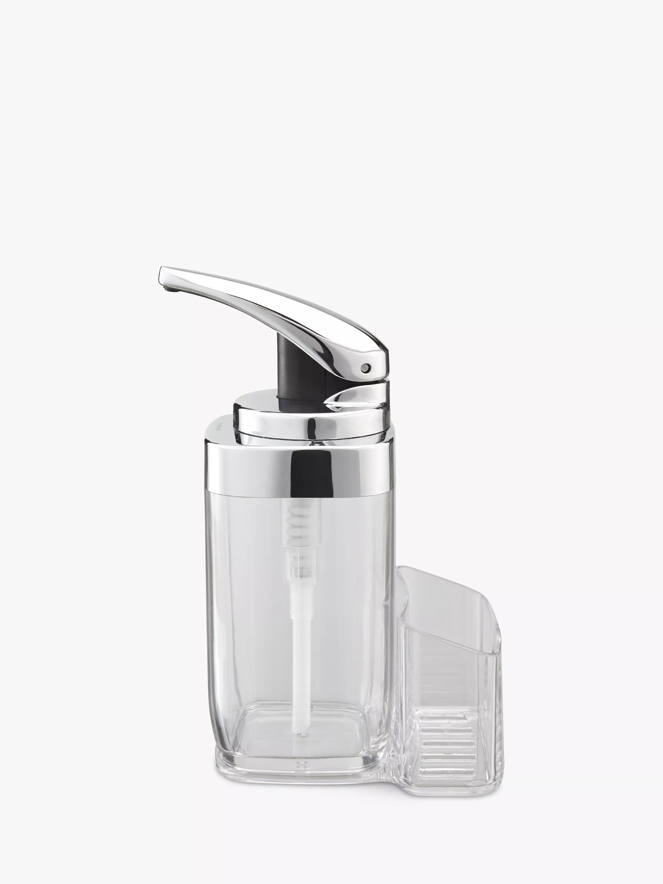 This push-pump features a precision lever engineered for precise, effortless dispensing of washing up liquid. Includes a removable caddy to conveniently store a sponge. Alternatively, fill with hand wash and use the caddy to hold a nail brush.