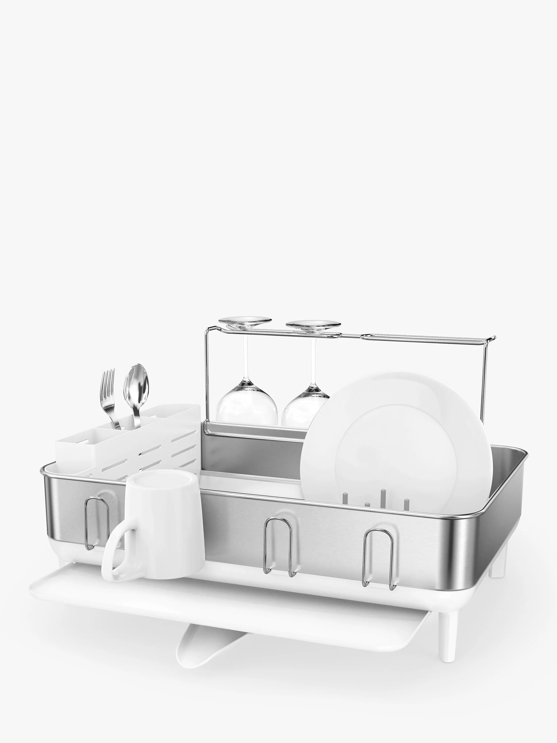 This clever dish rack has a solid stainless steel frame that matches the aesthetic of modern kitchen appliances. Its swivel spout rotates 360 degrees in any direction so it drains water directly into the sink - no matter how you place the dishrack on your worktop - and can be removed for easy cleaning.