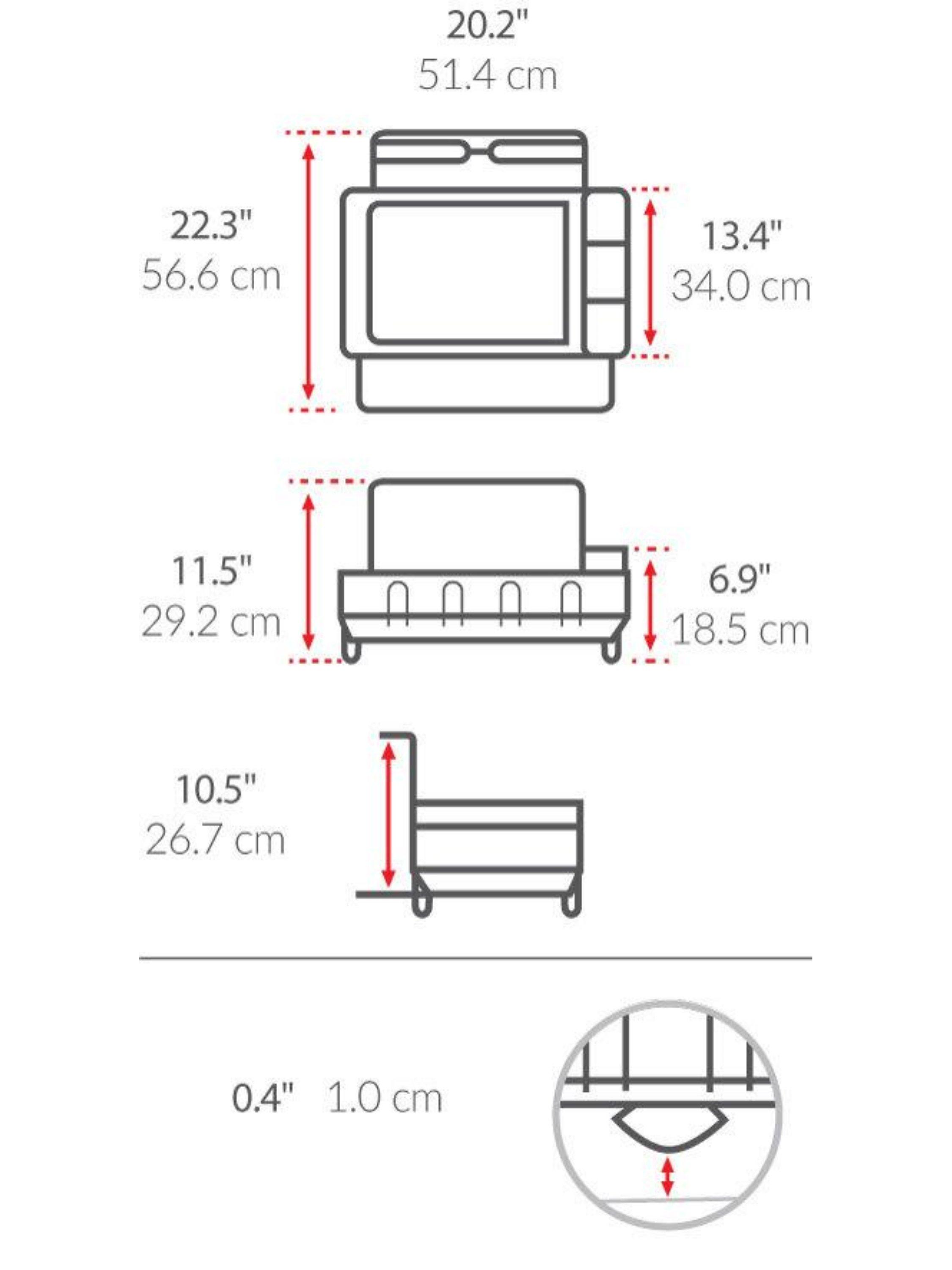 A lower profile, with anti-slip rubber feet, gives the dish rack greater stability to keep it firmly in place while fingerprint-proof coating helps protect against smudges and keeps it looking like new.