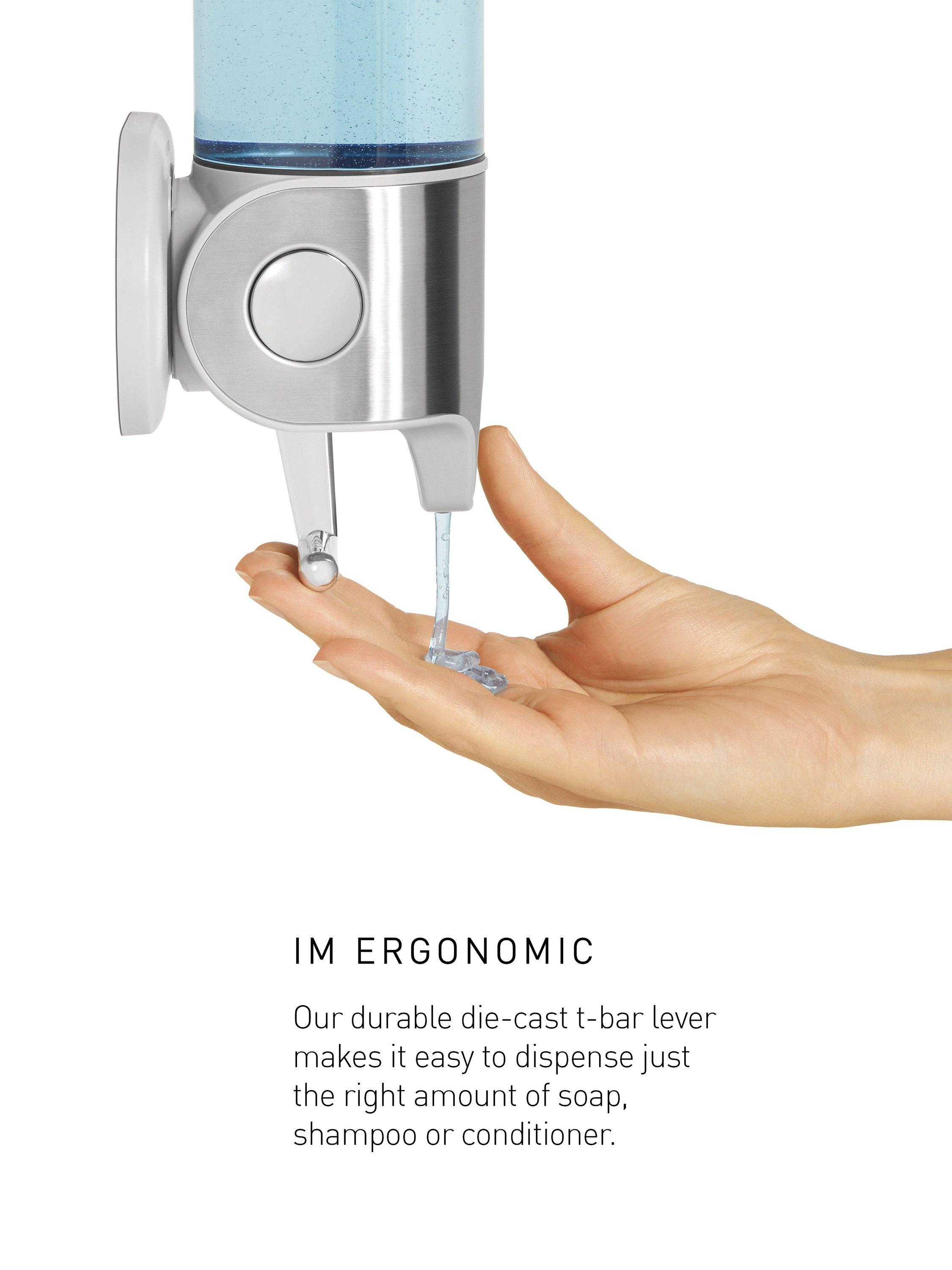 - Ergonomic: the durable die-cast t-bar lever makes it easy to dispense just the right amount of soap, shampoo or conditioner