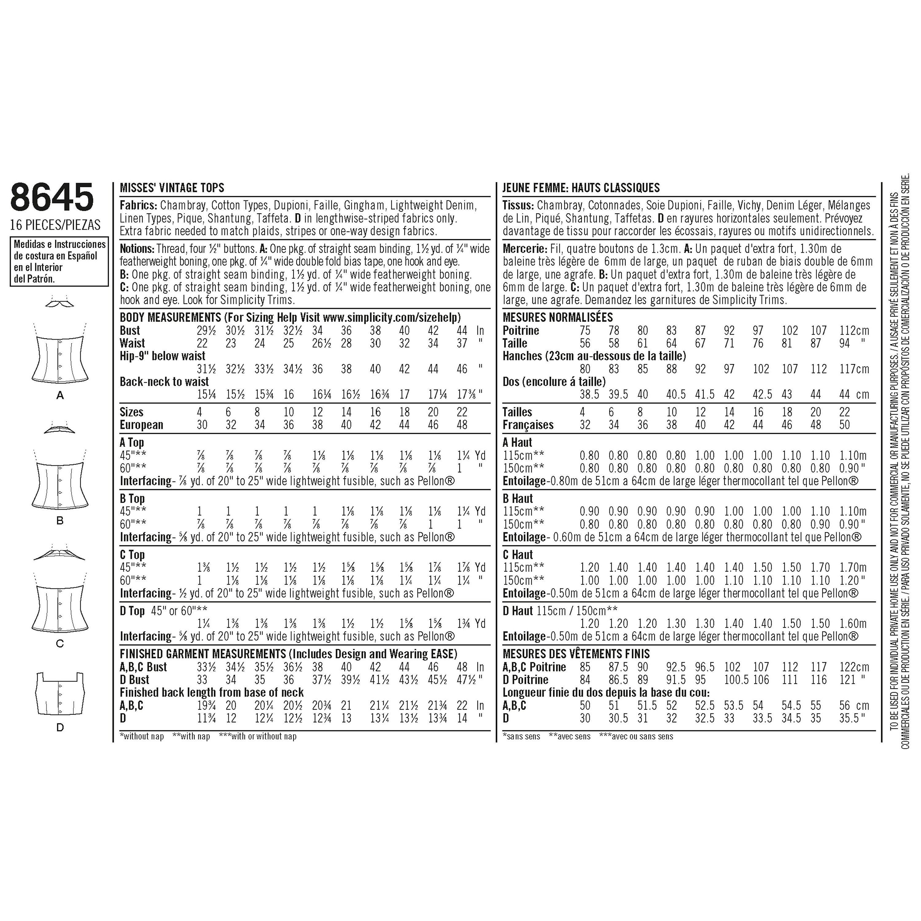 Simplicity1950's Vintage Halters and Sun Tops, 8645