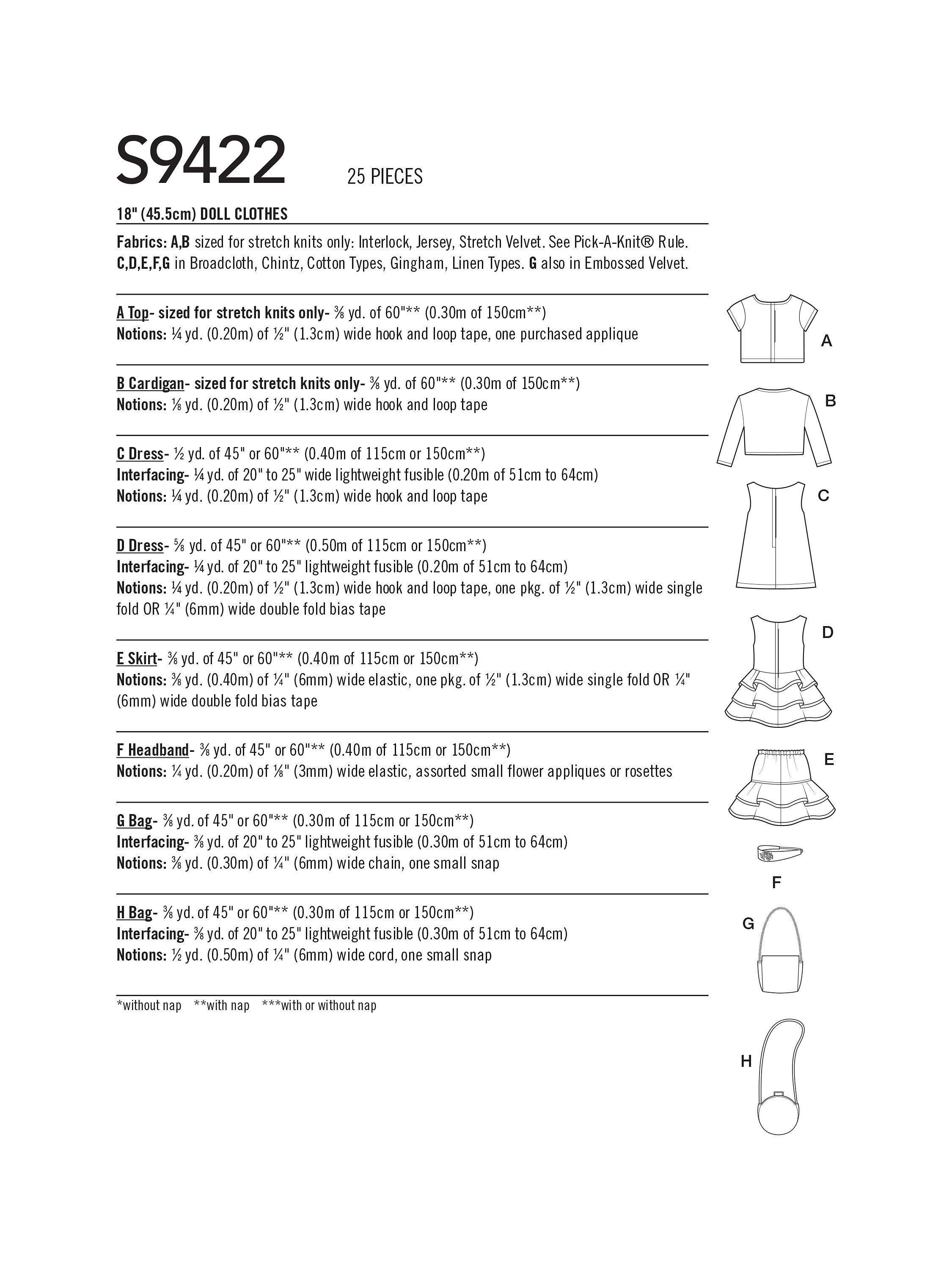 Simplicity46cm Doll Clothes Sewing Pattern, S9422