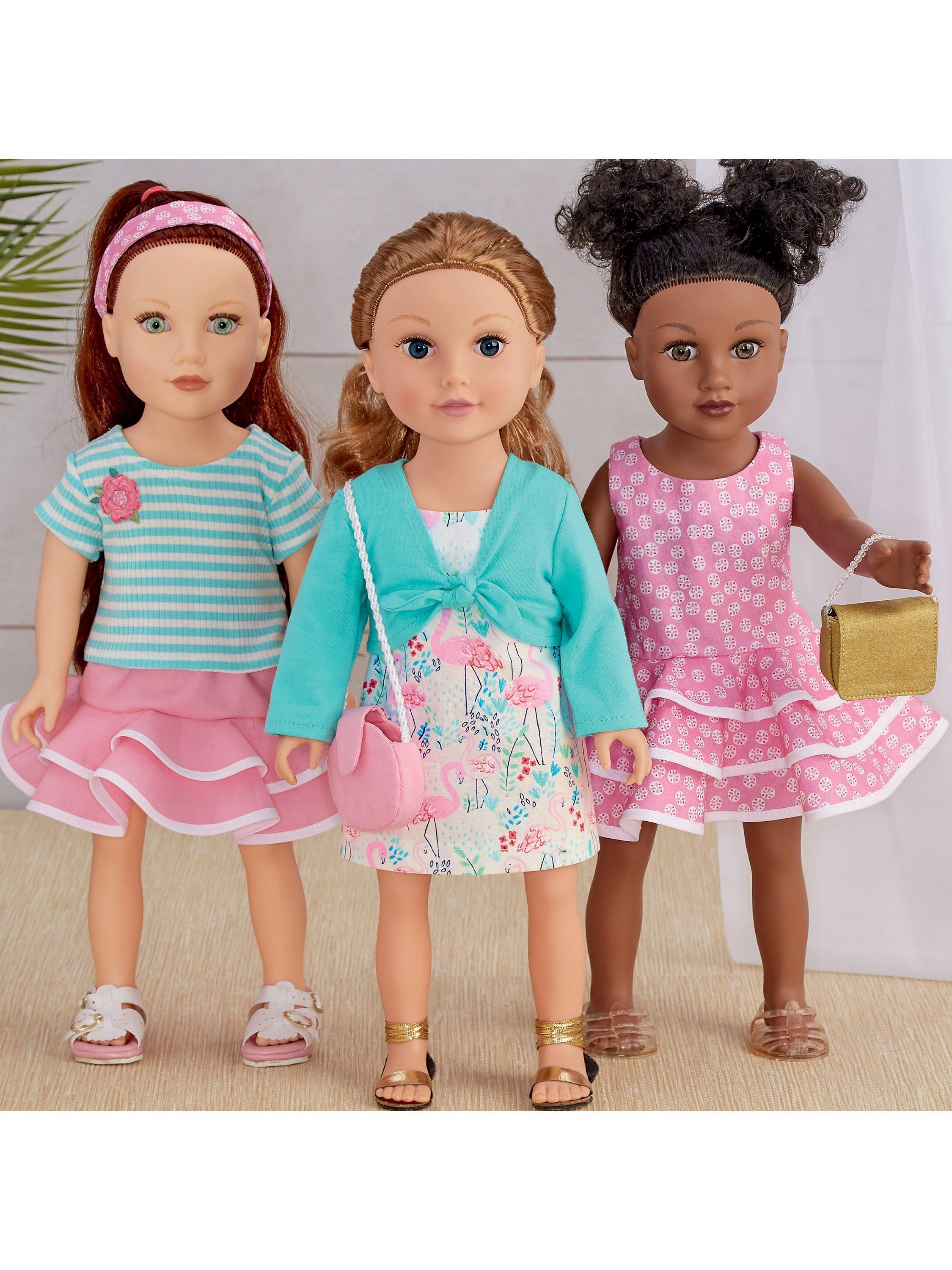 Dresses, skirt, top, cardigan and accessories for 45.5cm dolls.