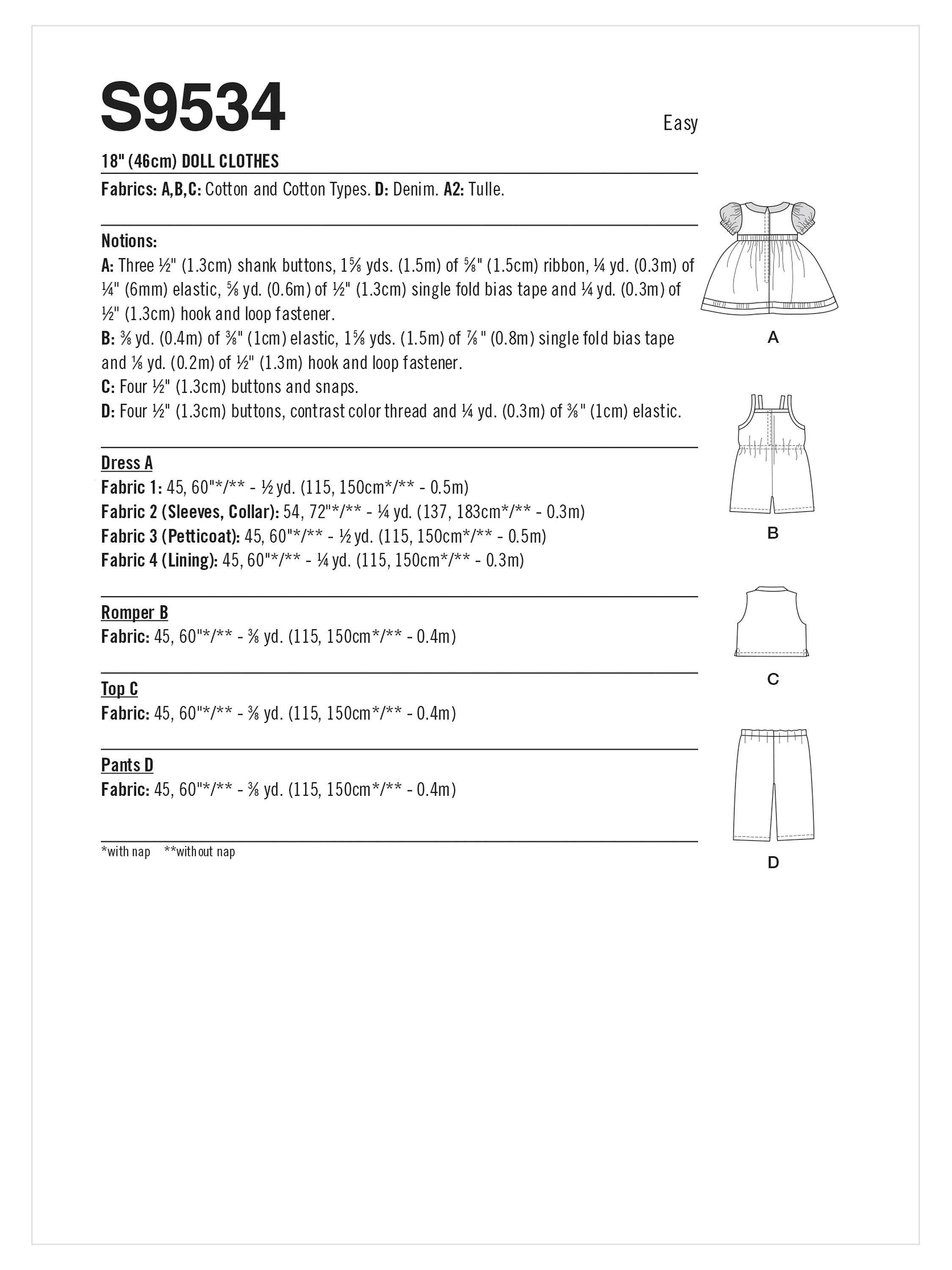 Simplicity46cm Doll Clothes Sewing Pattern, S9534, OS