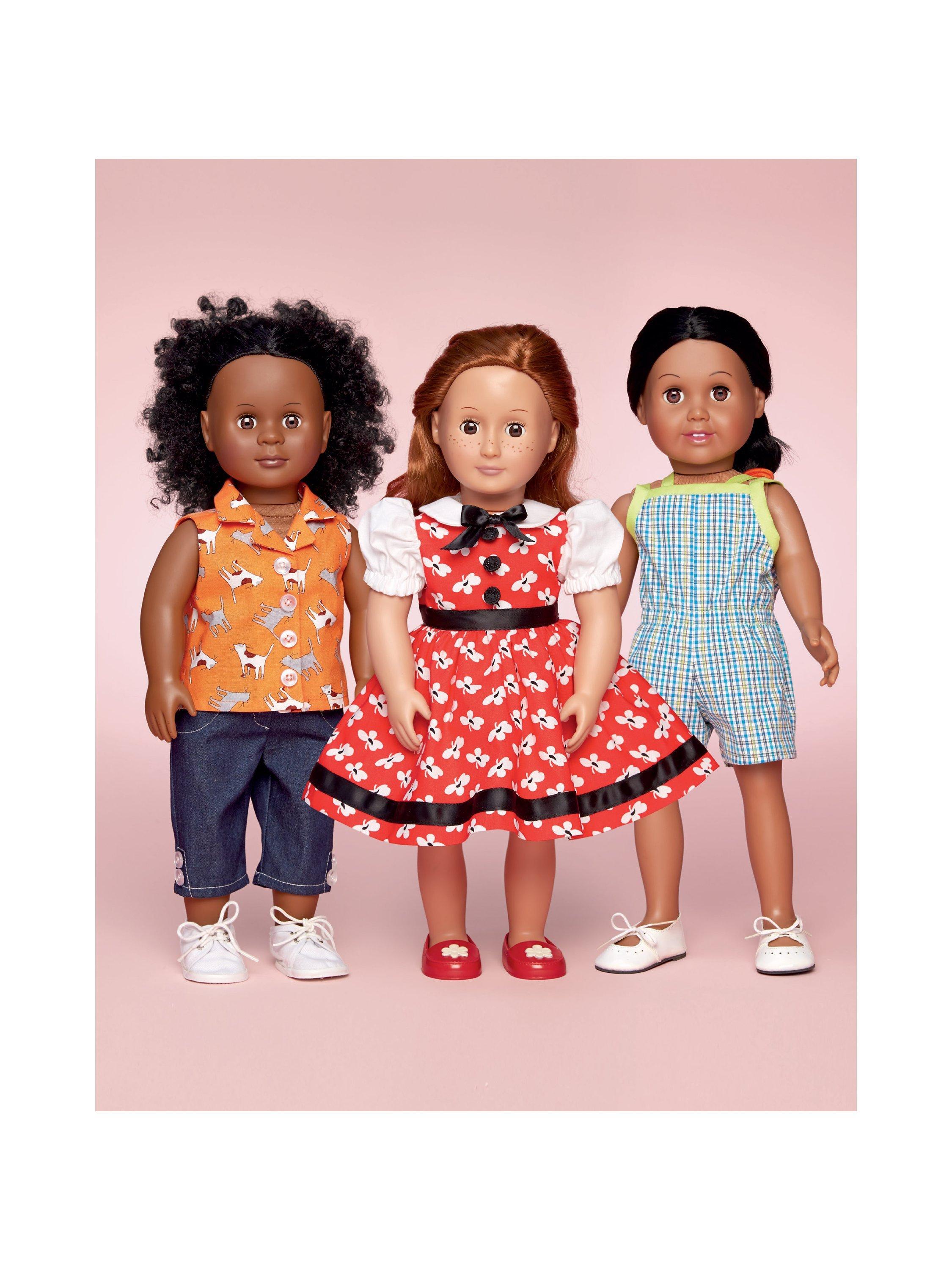 46cm doll clothes include a pretty dress with ribbon trim, fun romper and a sleeveless top with cropped denim pants.