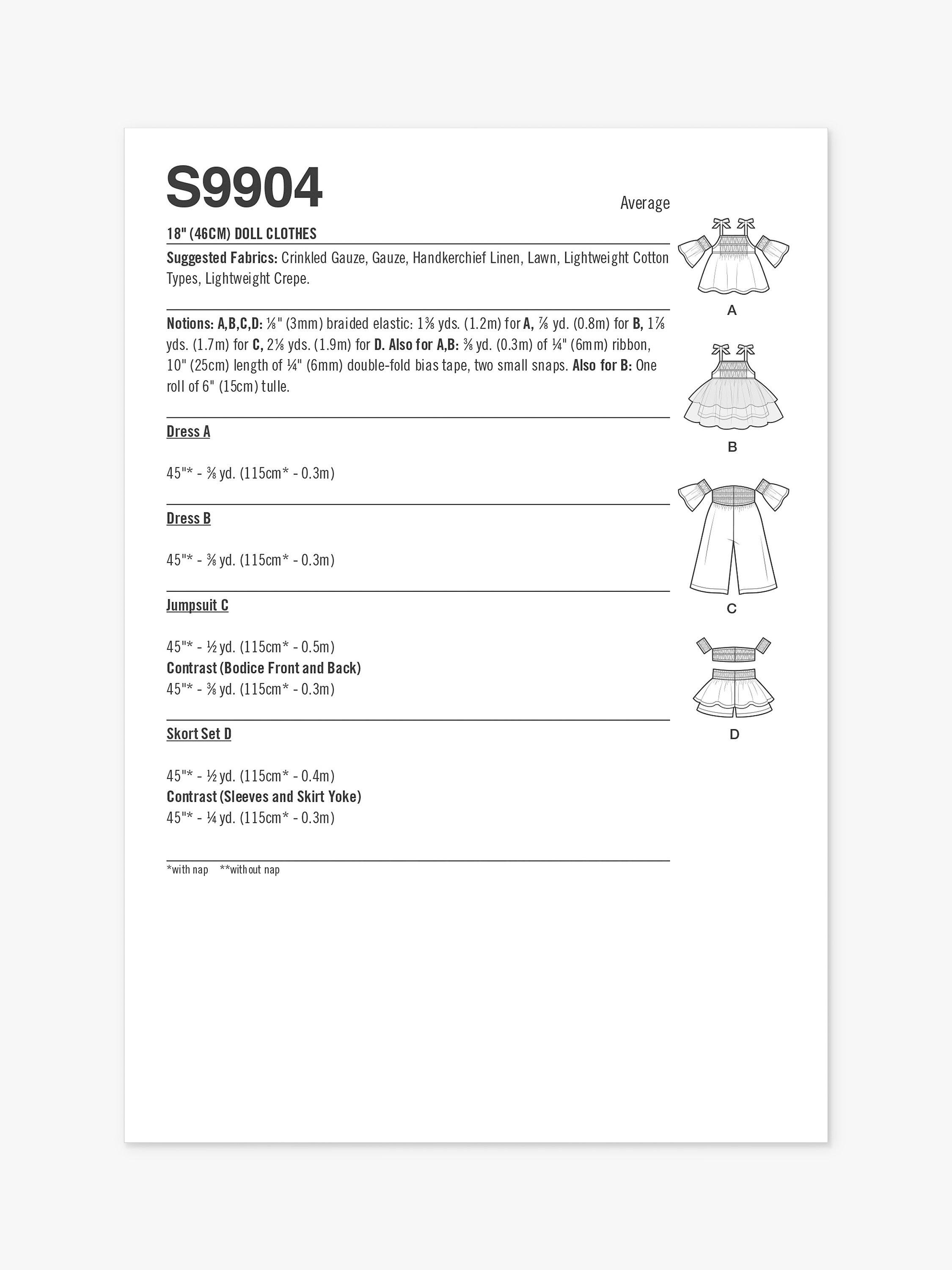 Simplicity46cm Doll Clothes Sewing Pattern, S9904
