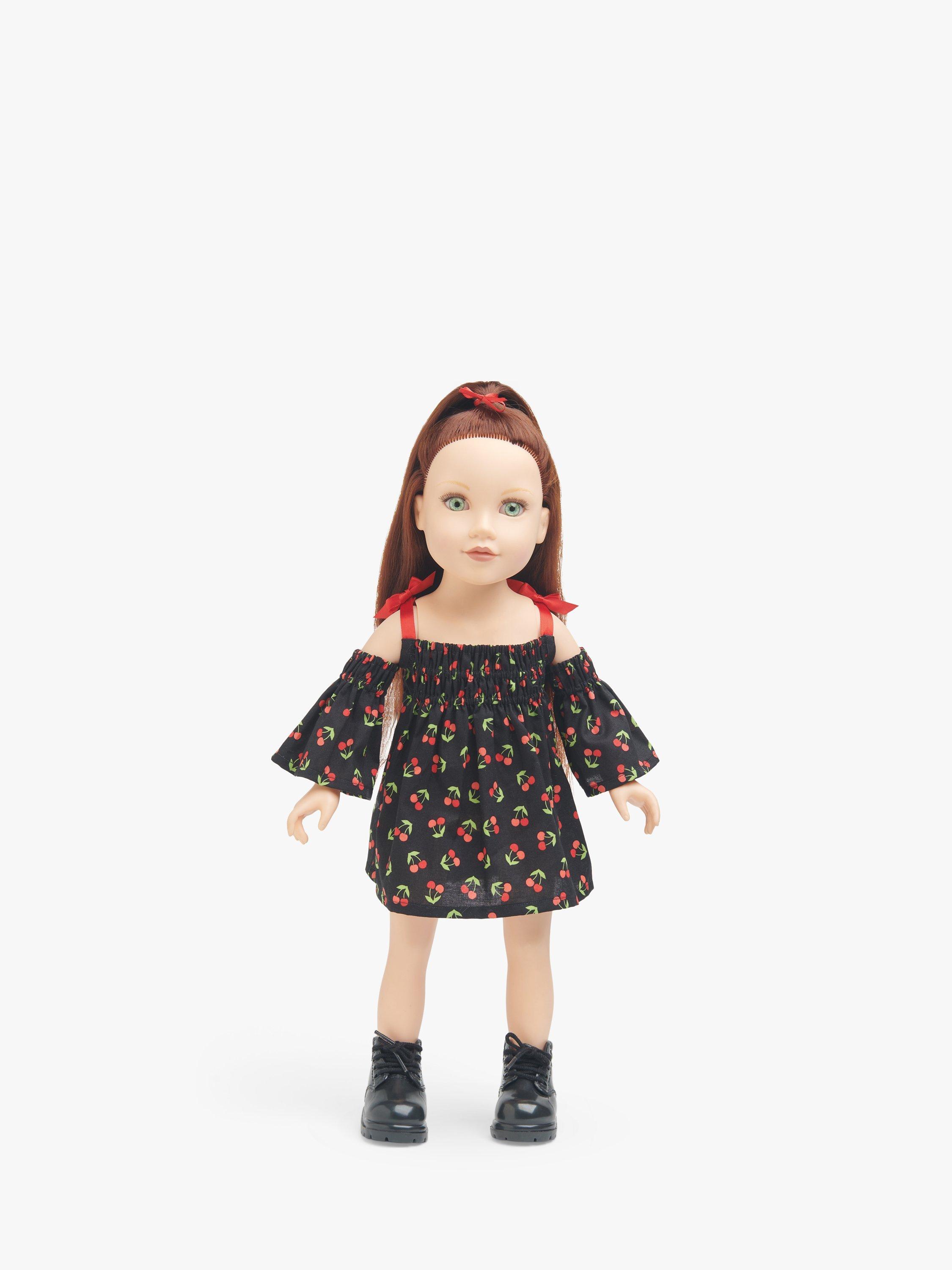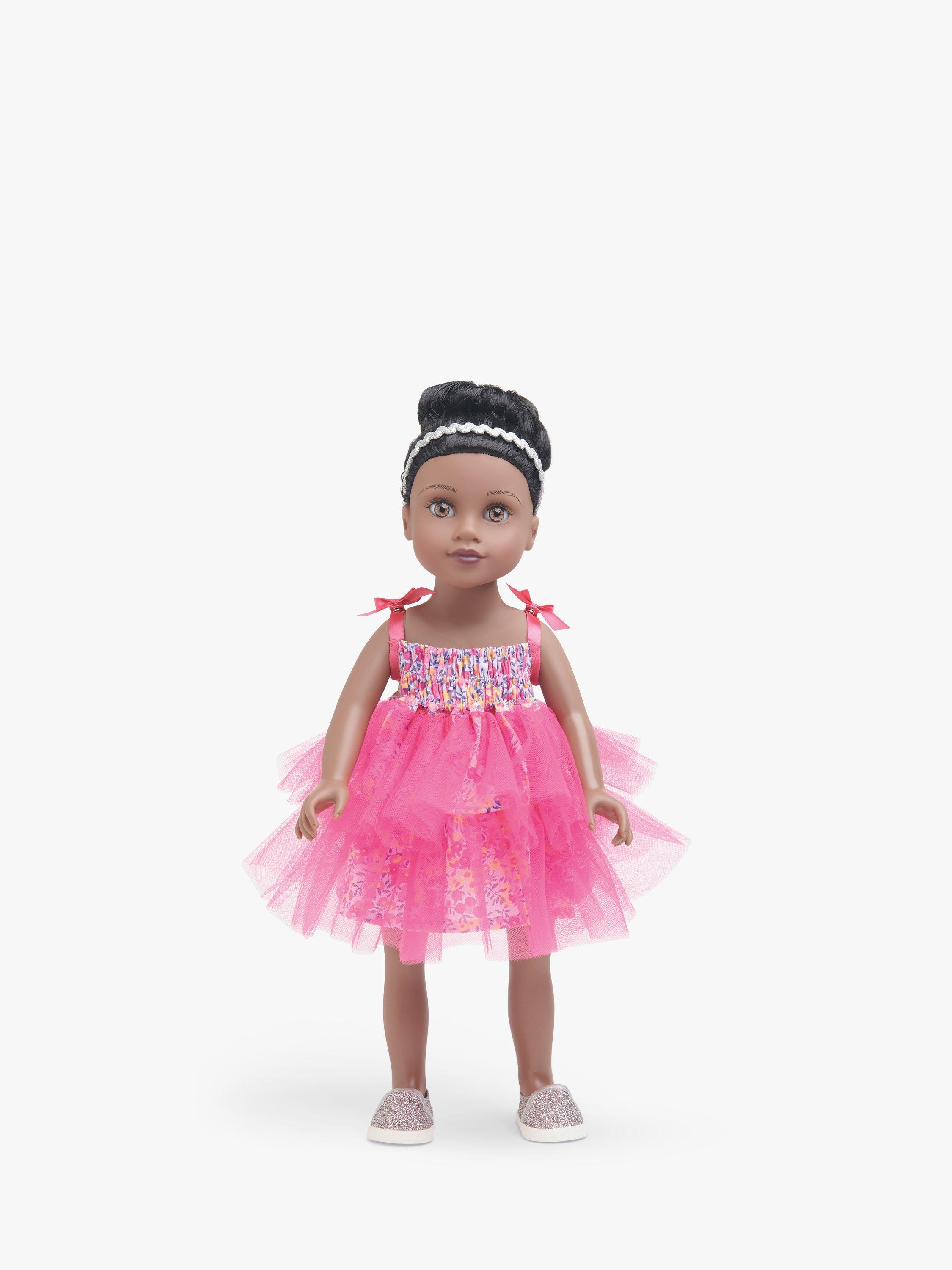 Cute and stylish clothes for 46cm dolls have elasticated bodices, sleeves, and waists to create easy stretch shirring.Dresses have shirred bodices, gathered skirts and bias-bound armholes with snap-shut ribbon straps and bow accents. Options include shirred bell sleeves or tulle overskirts.