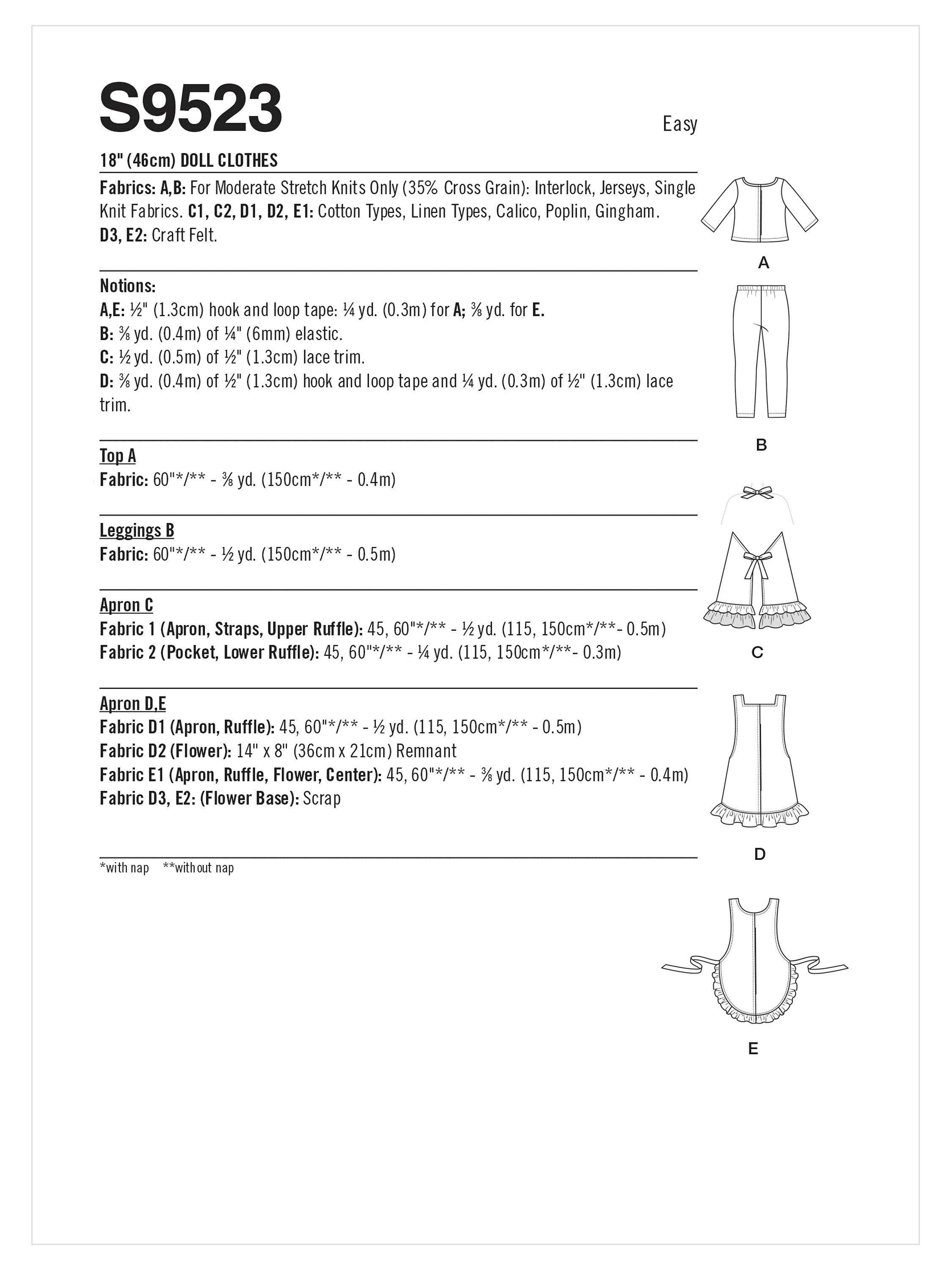 Simplicity46cm Dolls' Cooking Outfits Sewing Pattern