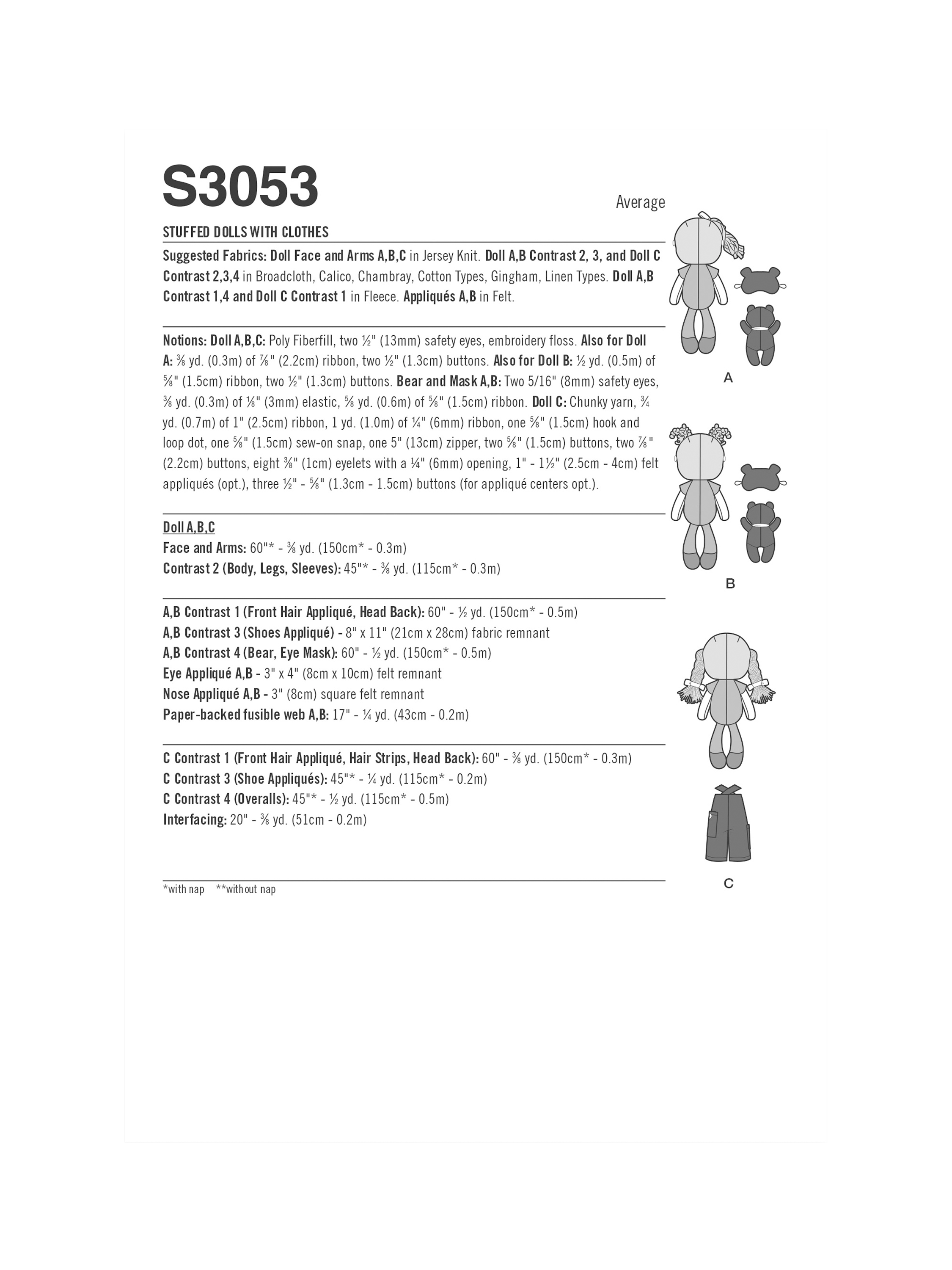 Simplicity46cm Plush Dolls Sewing Pattern, S3053