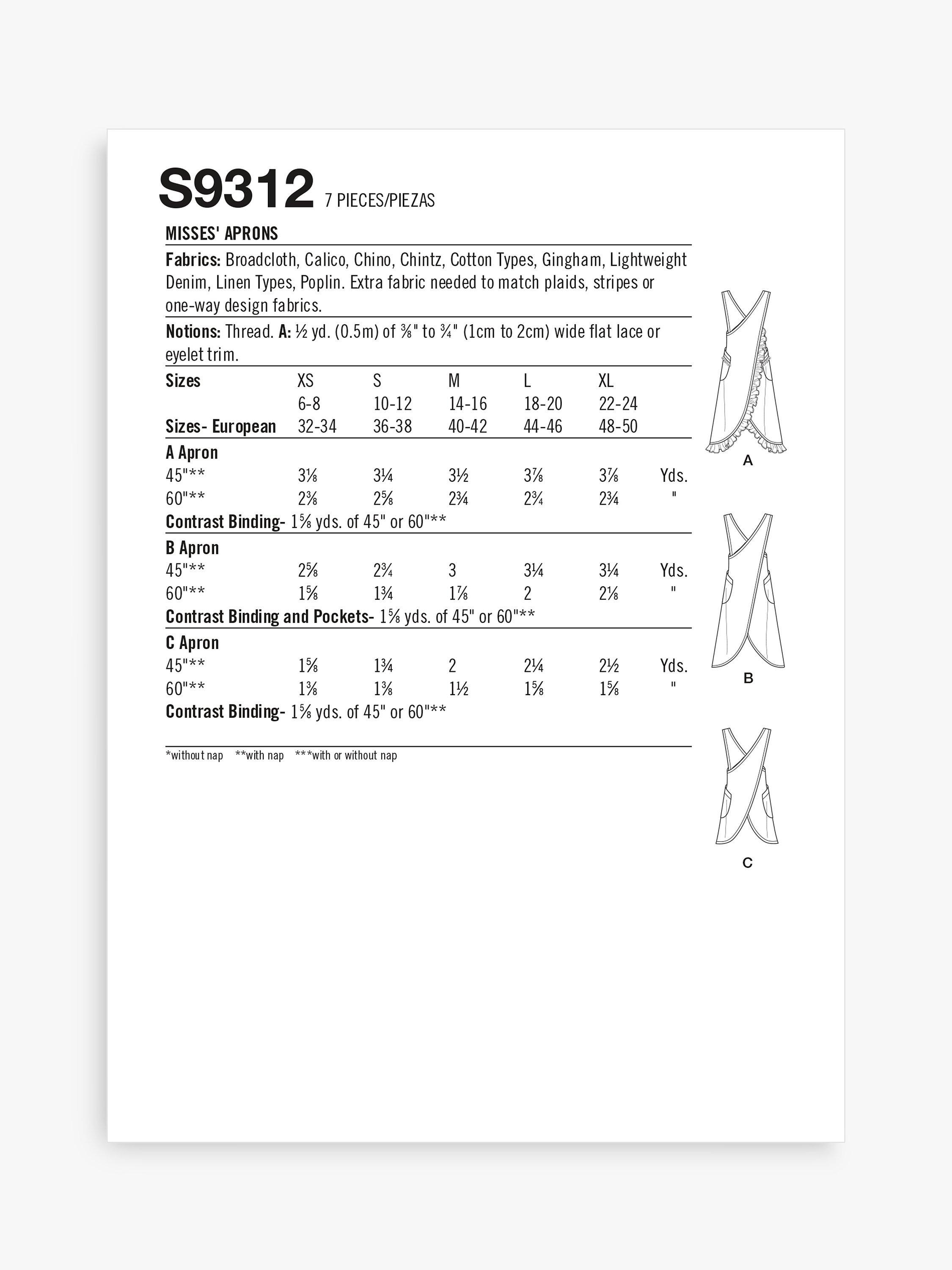 SimplicityAccessories Wrap Round Apron Sewing Pattern, S9312, A