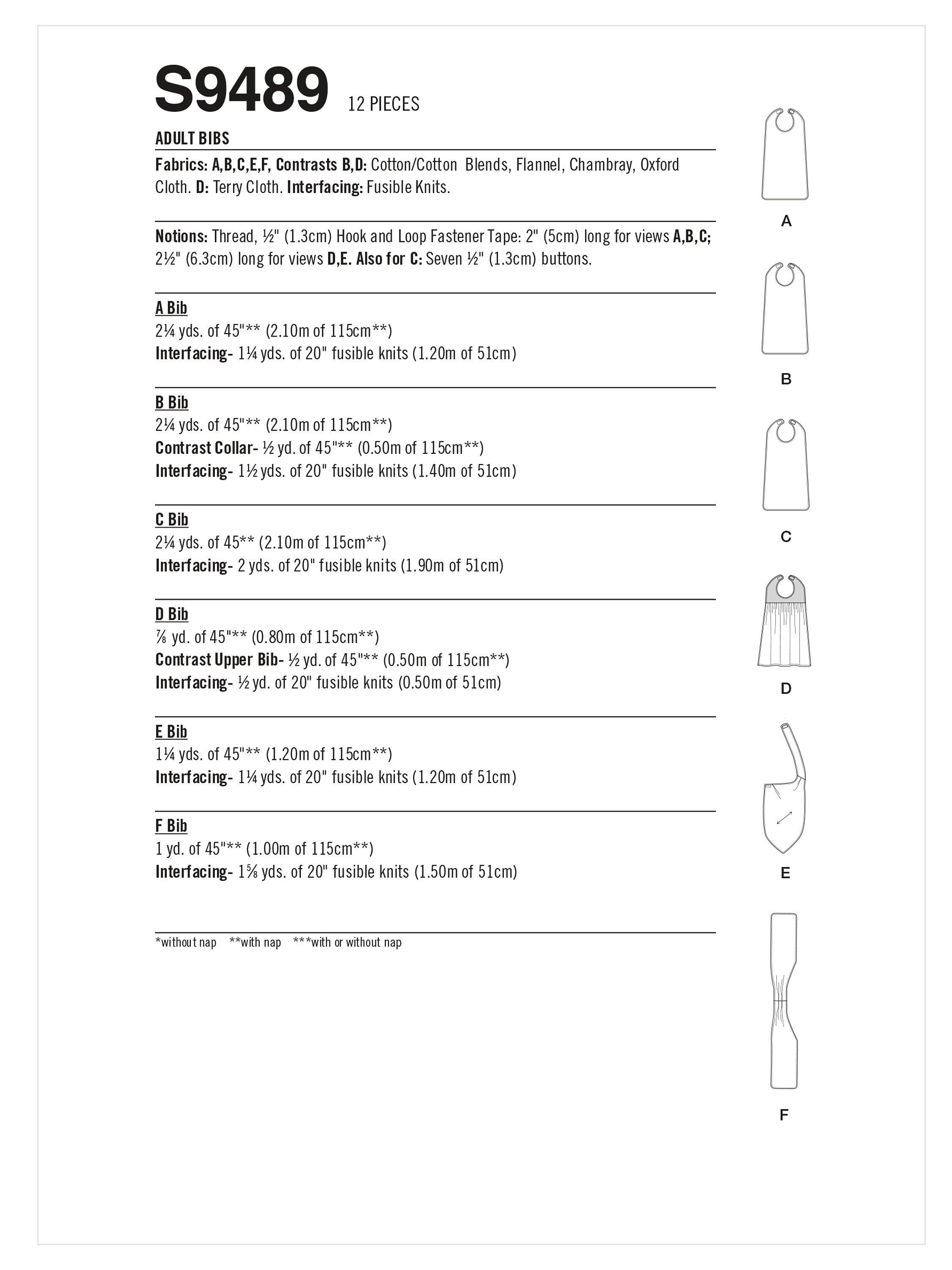 SimplicityAdult Bibs Sewing Pattern, S9489, OS