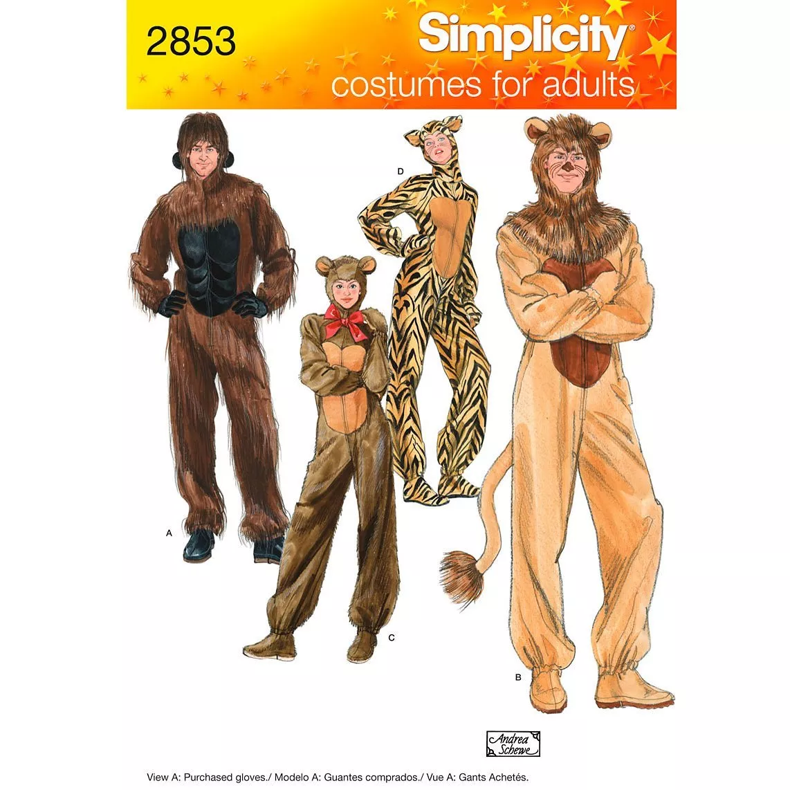 Make realistic gorilla, lion, bear and cat costumes for adults with this easy-to-follow sewing pattern for Simplicity. Sizes: XS (chest/bust 30-32", hip 31-32.5"), S (chest/bust 34-36", hip 35-37"), M (chest/bust 38-40", hip 39-41"), L (chest/bust 42-44", hip 43-45"), XL (chest/bust 46-48", hip 47-49").