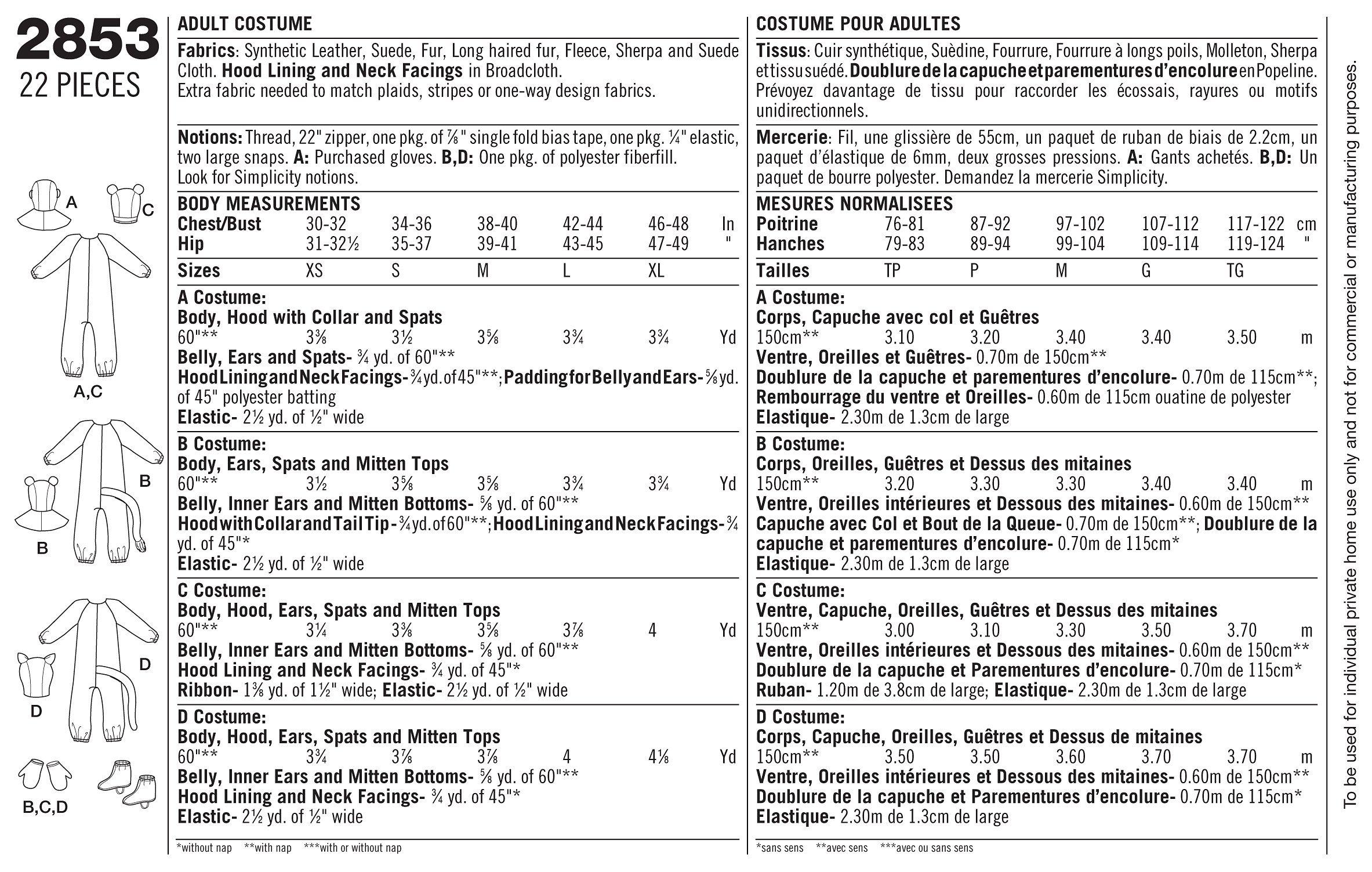 SimplicityAdult Costumes Sewing Leaflet, 2853, A