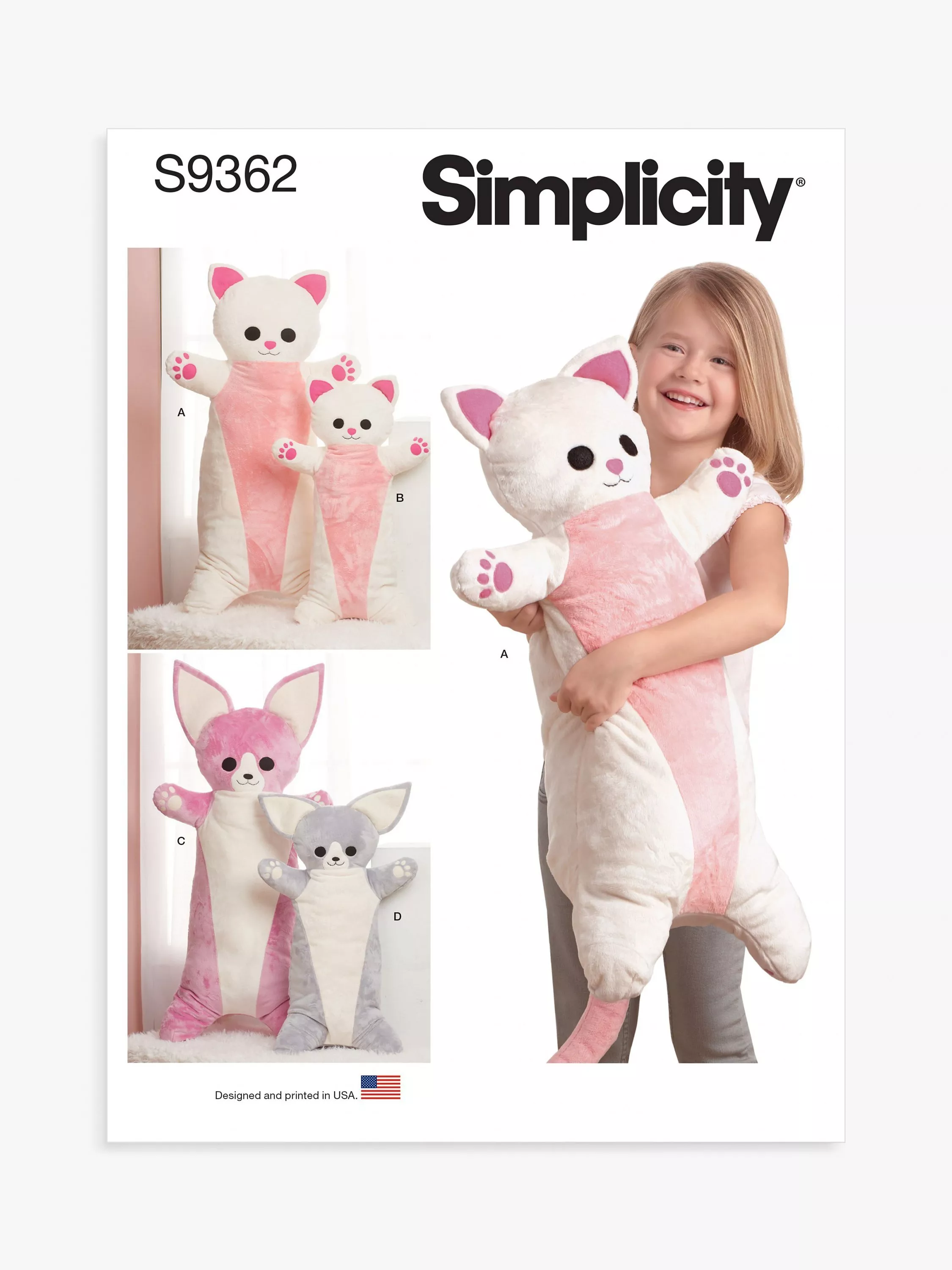 SimplicityAnimal Plush Body Pillows Sewing Pattern, S9362