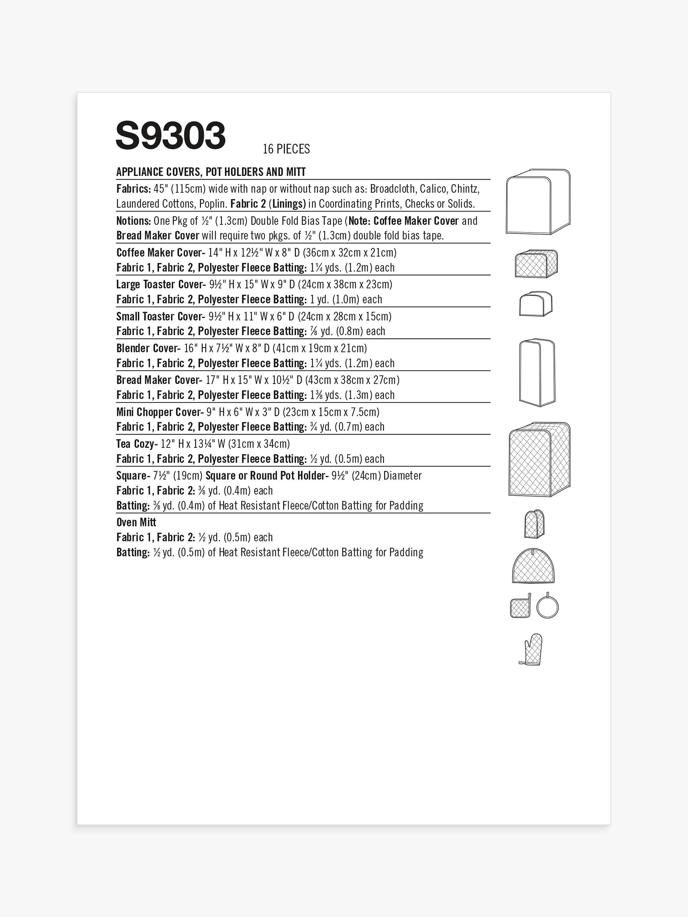 SimplicityAppliance Cover and Kitchen Textiles Sewing Pattern, S9303
