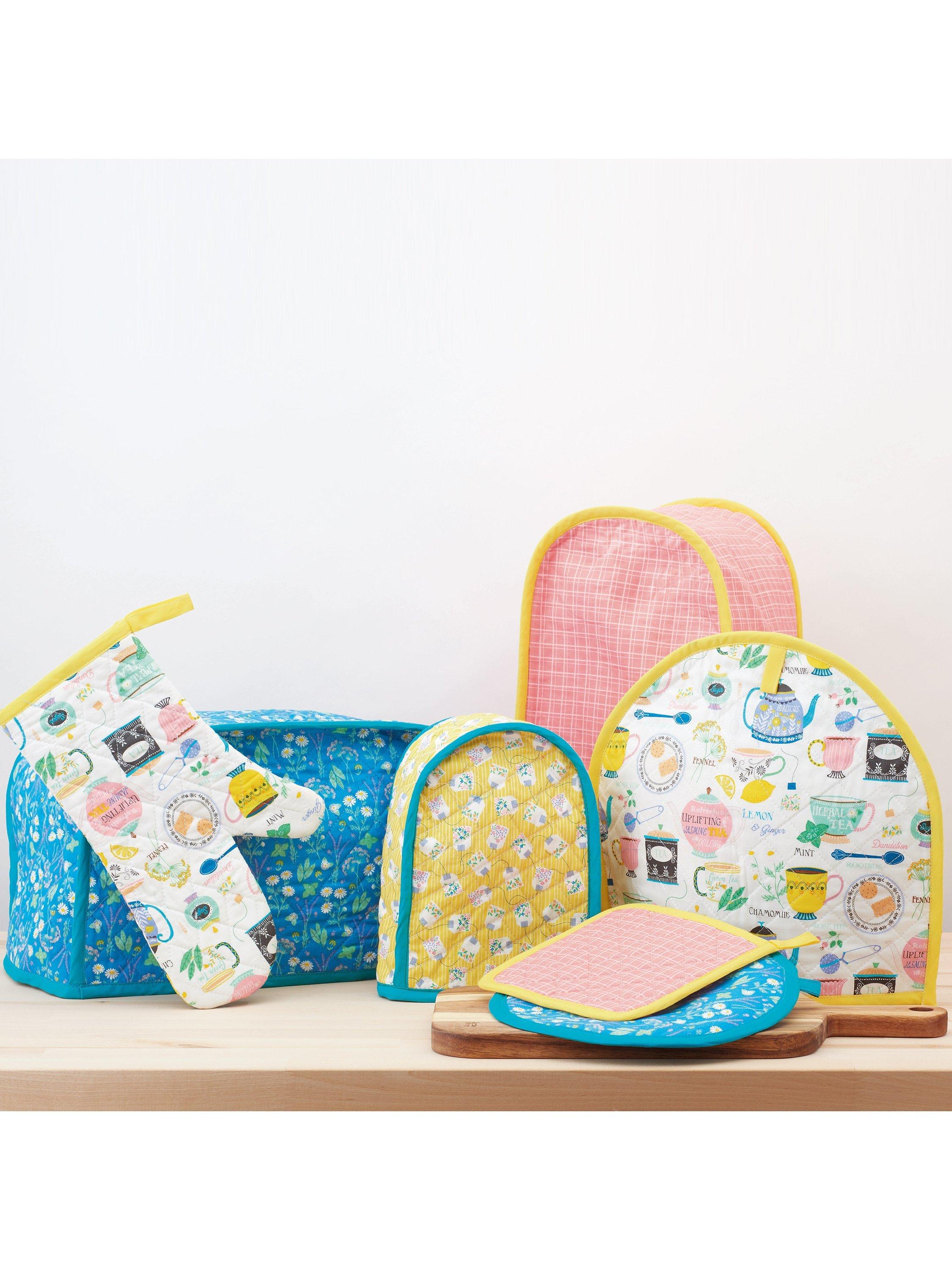 Custom appliance covers, pot holders and oven mitt, all with easy bias-tape finishing & optional quilting.