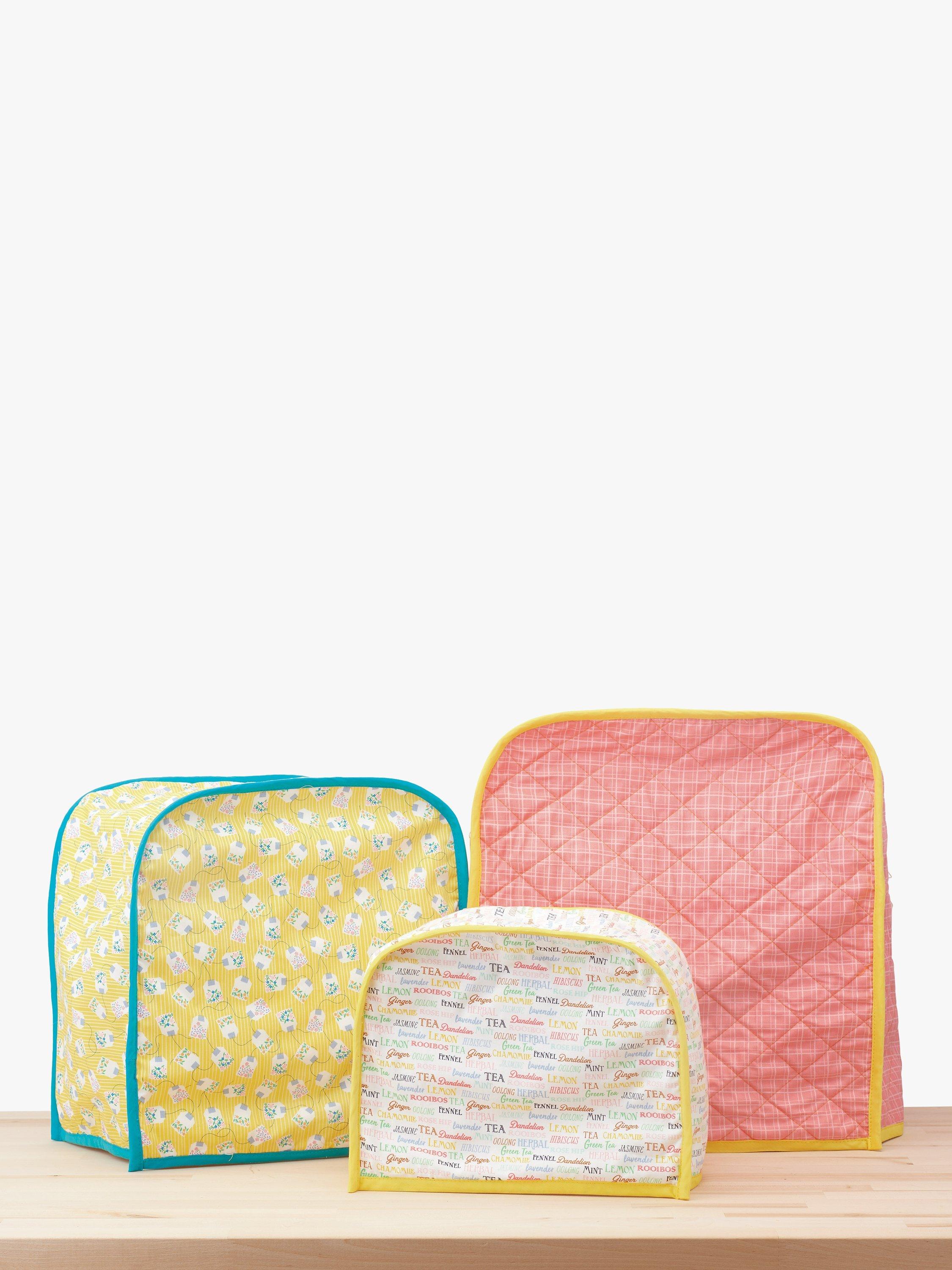 Pattern includes covers for coffee maker, bread maker, blender, toasters, mini chopper and tea cosy.