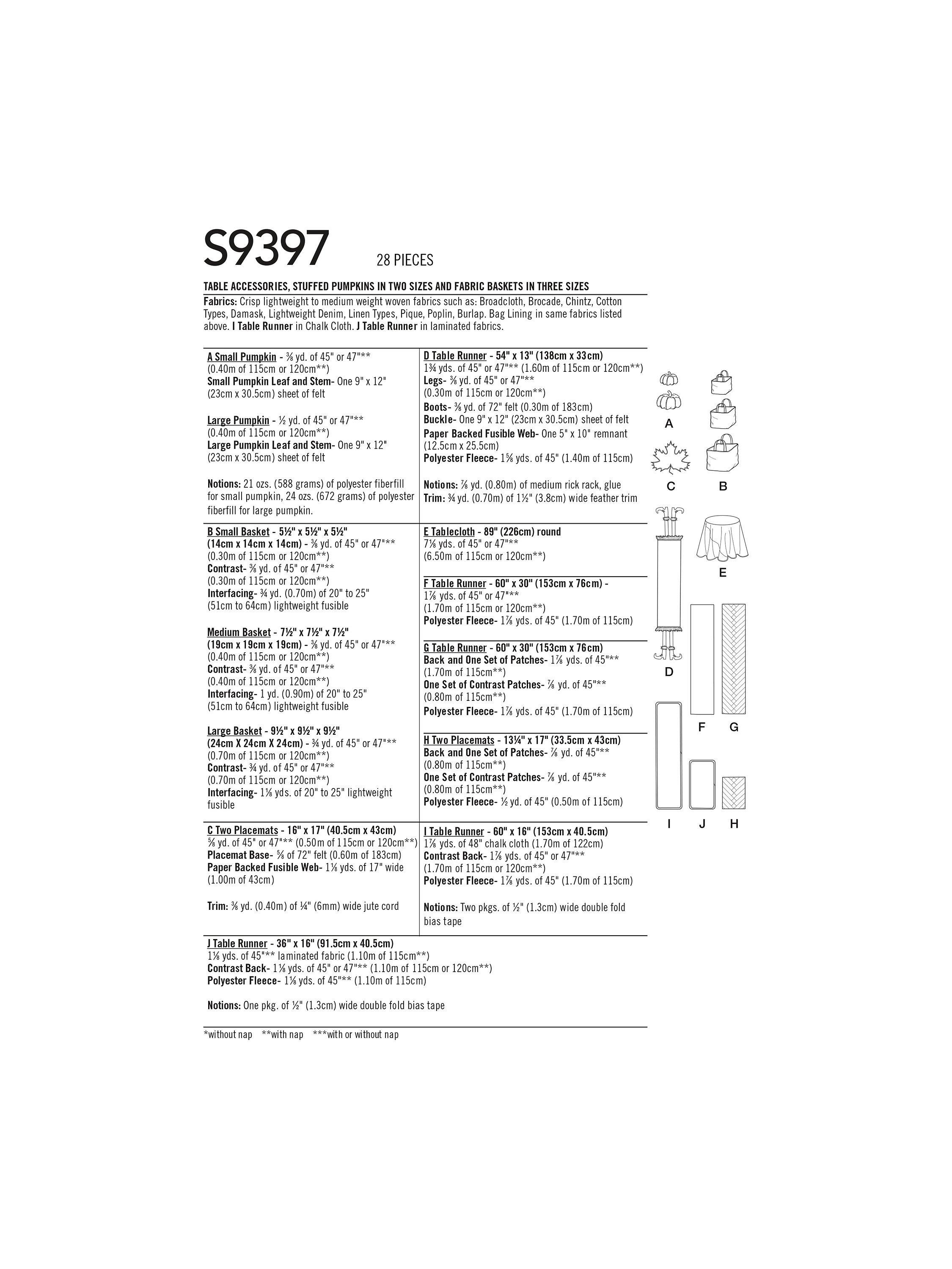 SimplicityAutumn Table Accessories Sewing Pattern S9397, OS