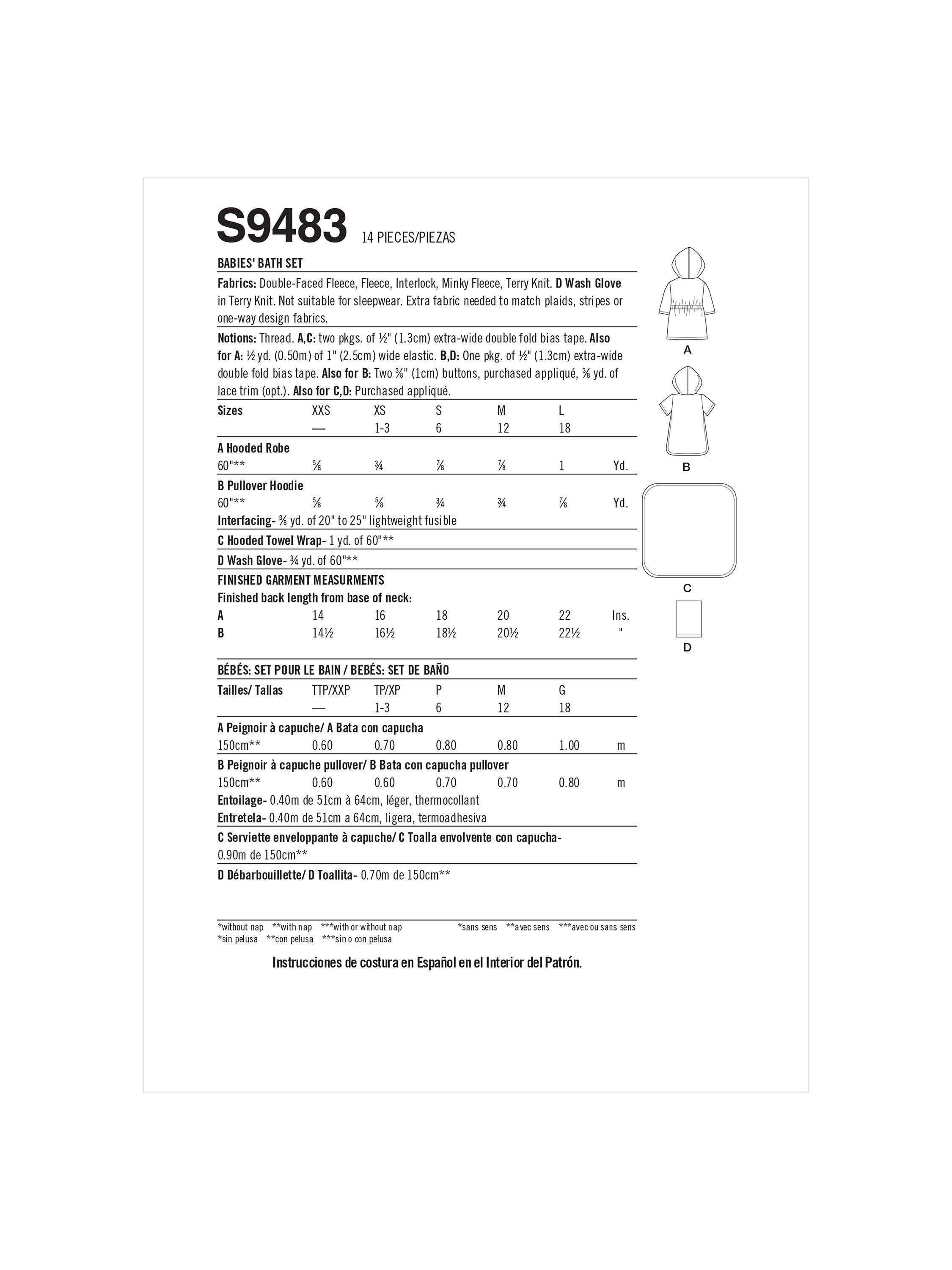 SimplicityBabies' Bath Set Sewing Pattern, S9483, A