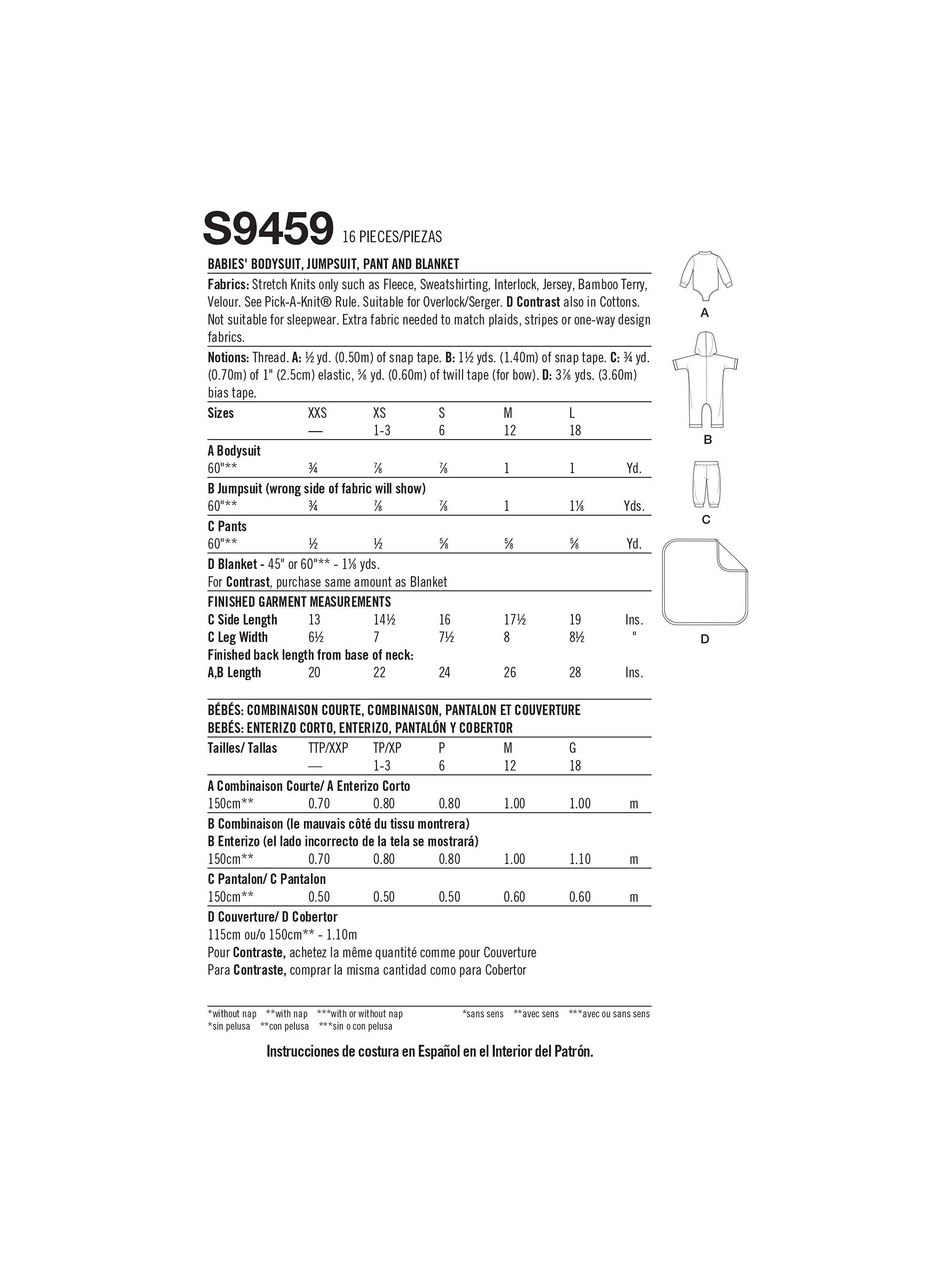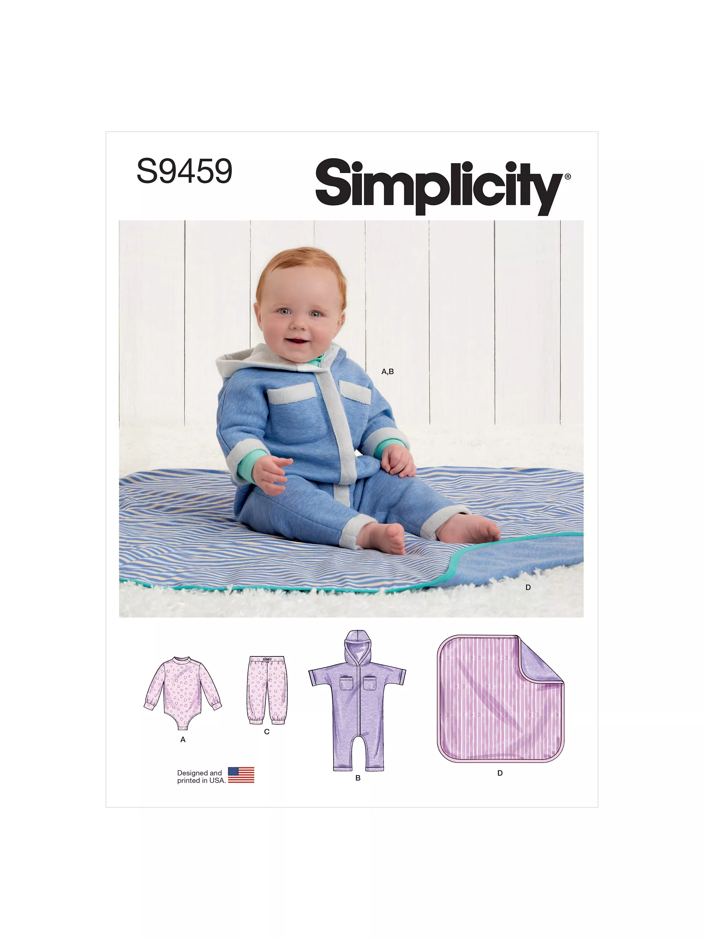 SimplicityBabies' Bodysuit, Jumpsuit, Pant & Blanket Sewing Pattern, S9459, A