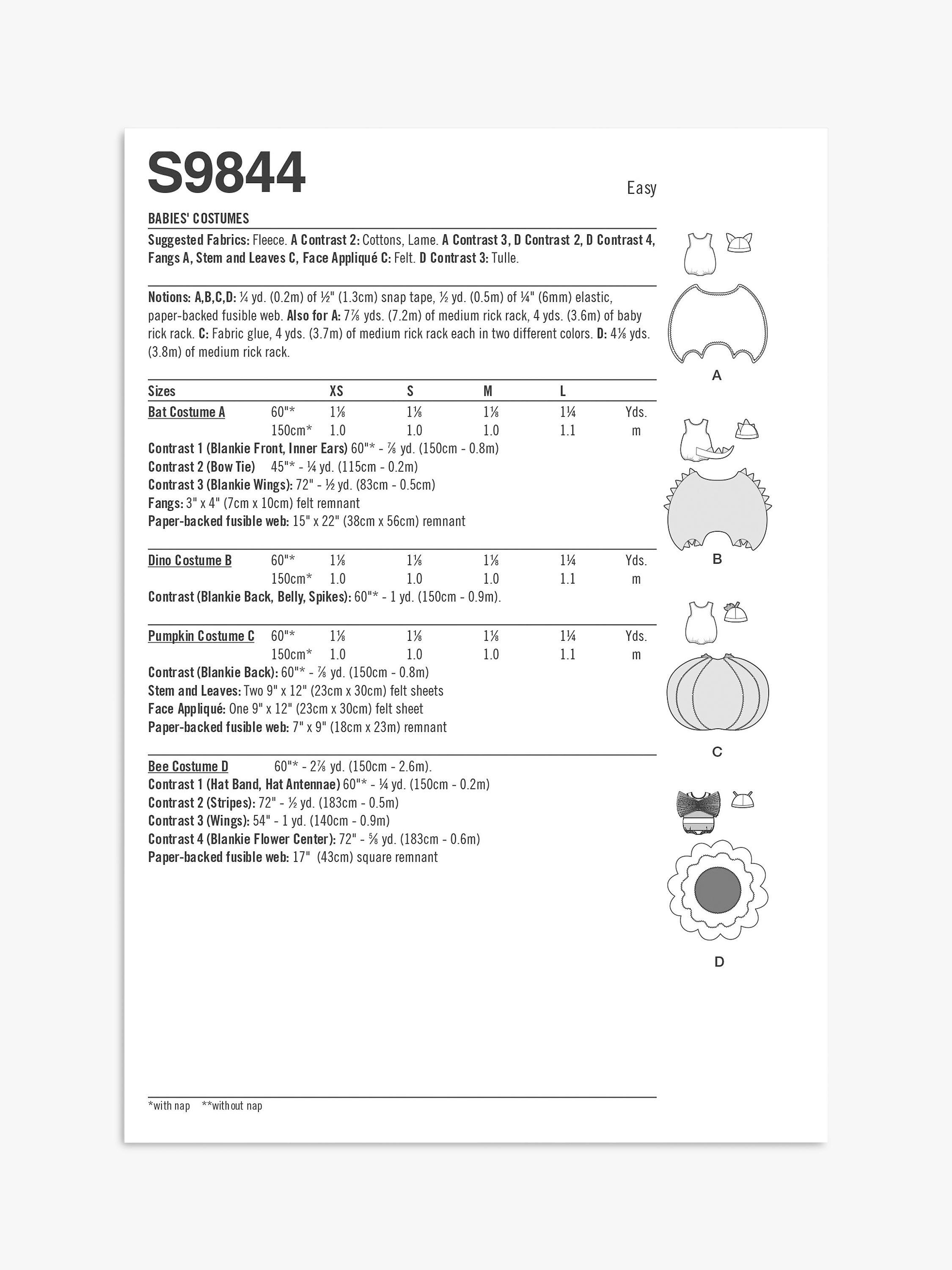 SimplicityBabies' Halloween Costumes Sewing Pattern, S9844