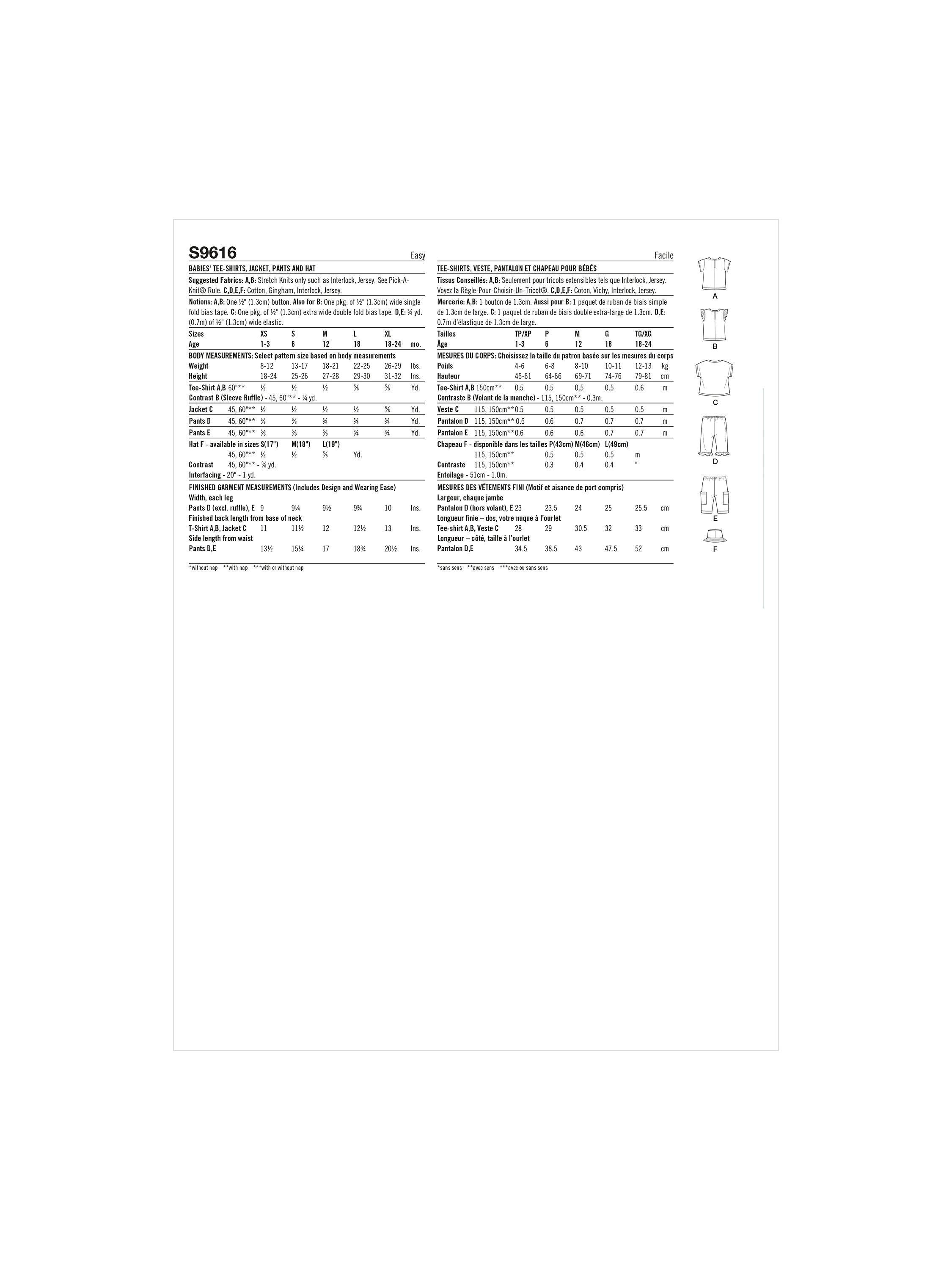 SimplicityBabies' Tees, Jacket, Pants and Hat Sewing Pattern, S9616A