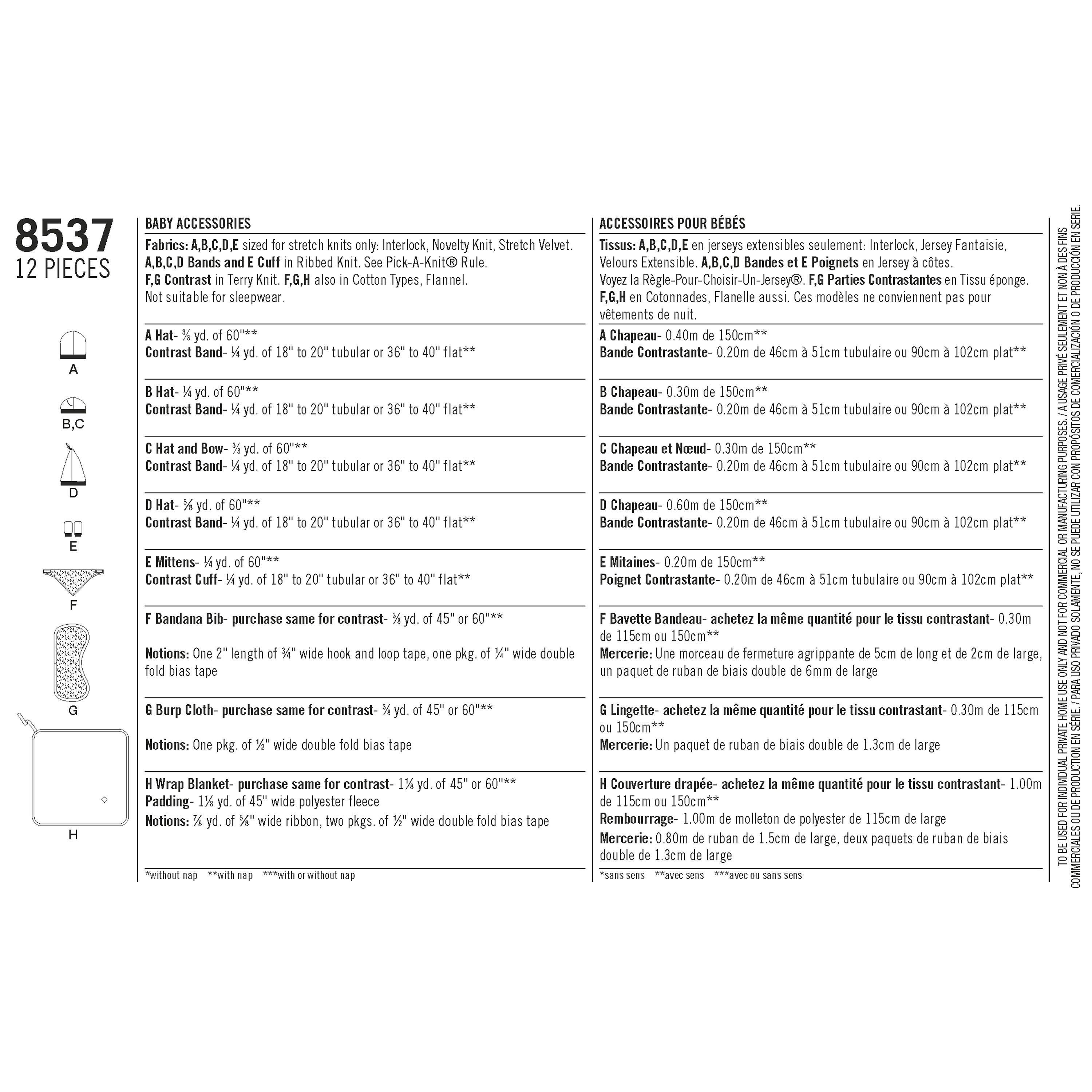 SimplicityBaby Accessories Sewing Pattern, 8537