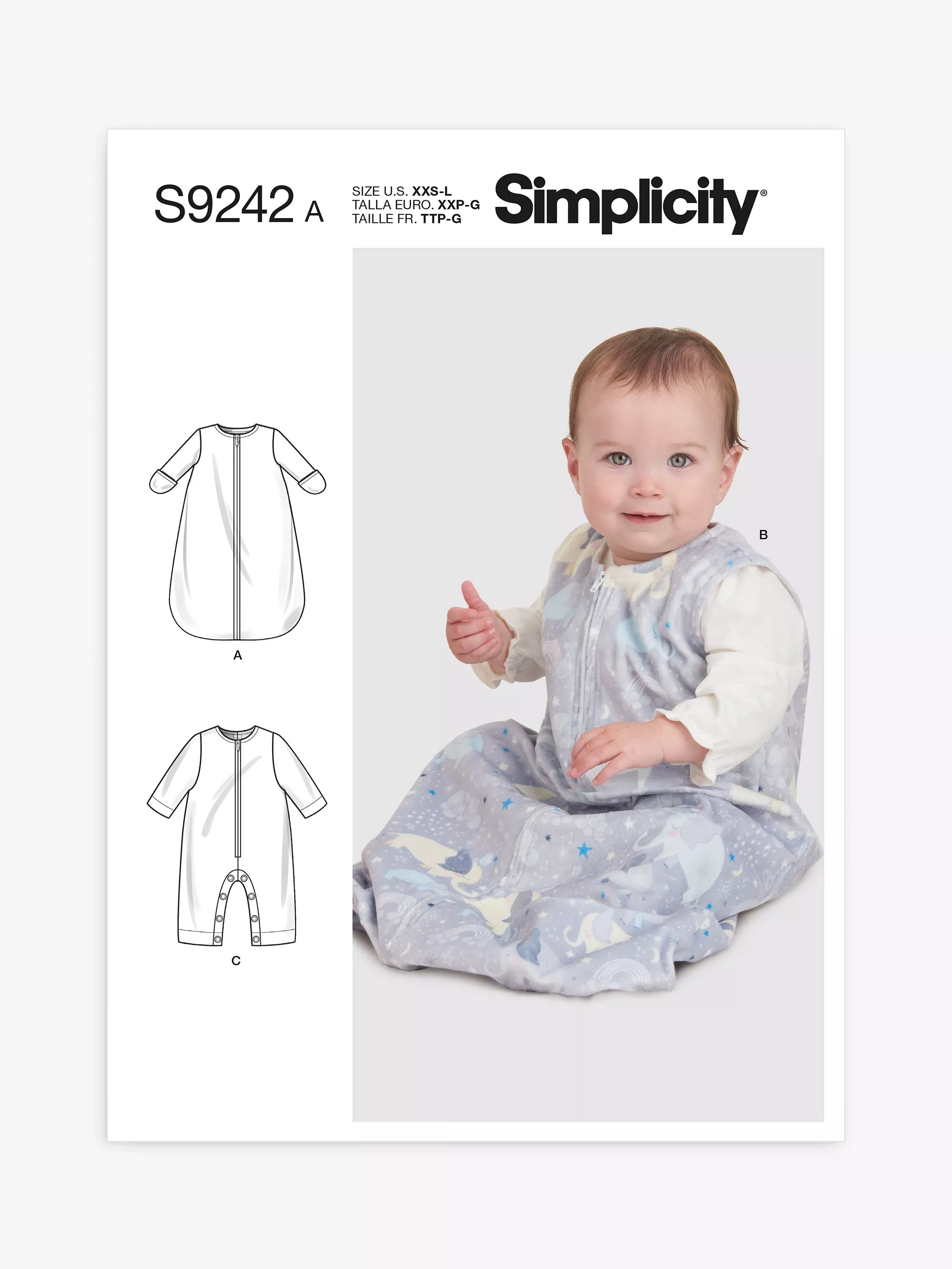 SimplicityBaby Bunting and Bodysuit Sewing Pattern, S9242, A