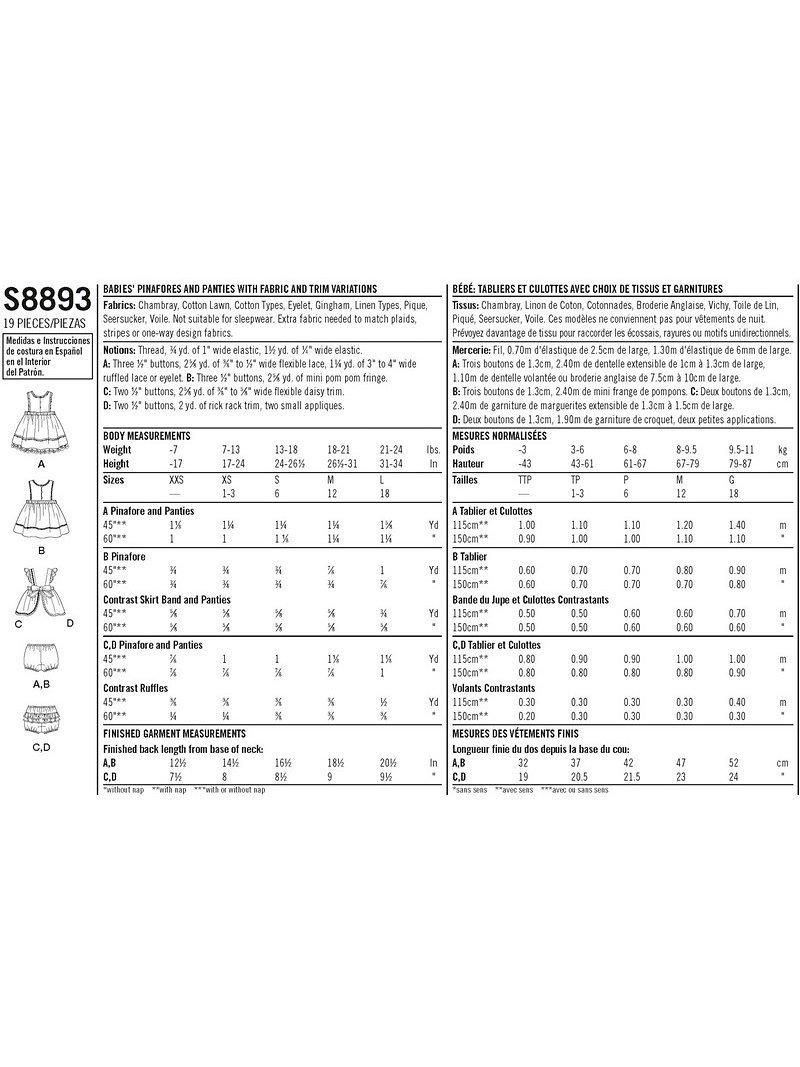 SimplicityBaby Dress and Bottoms Sewing Pattern, 8893
