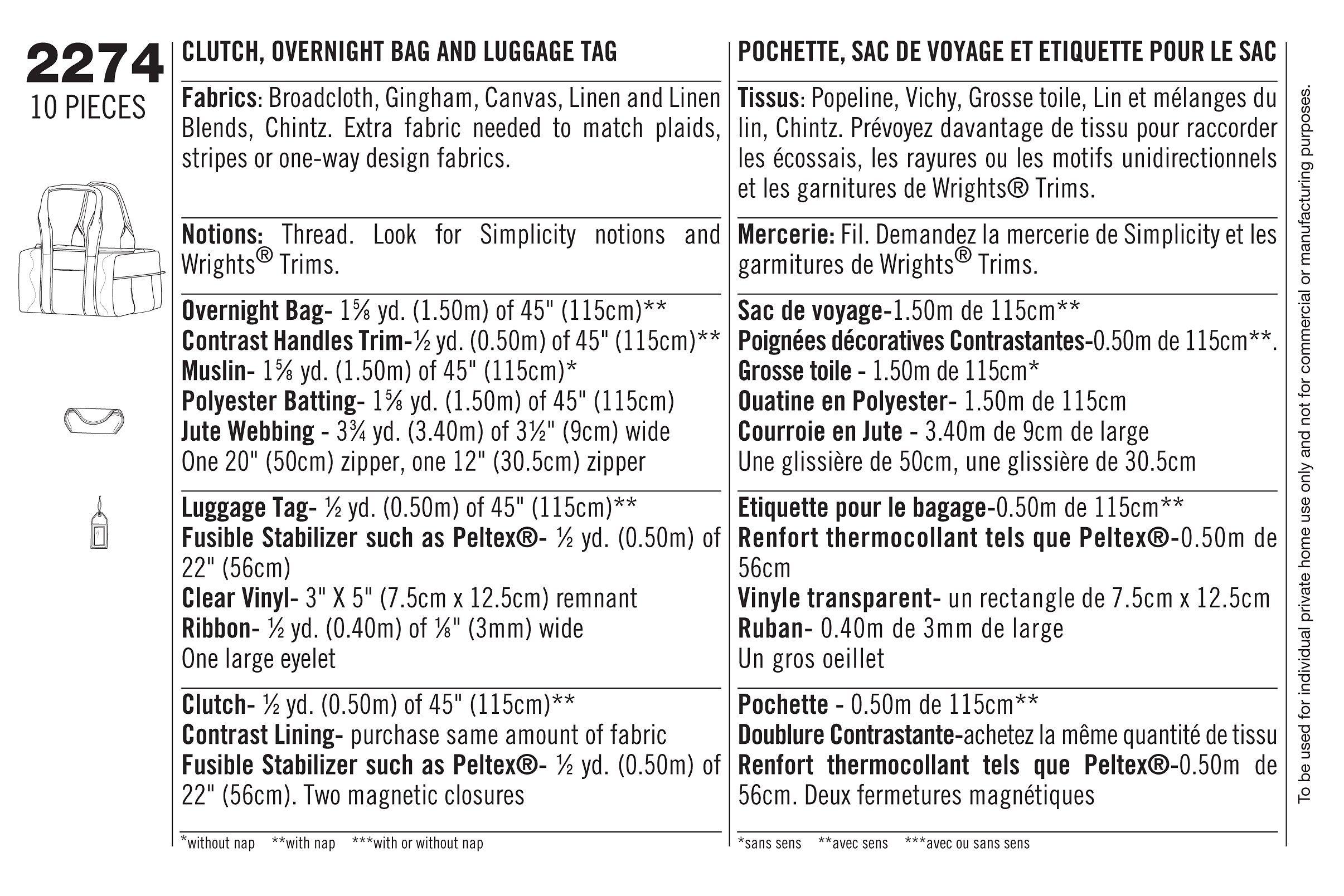 Simplicity sewing pattern for a clutch, overnight bag and luggage tag. One size.