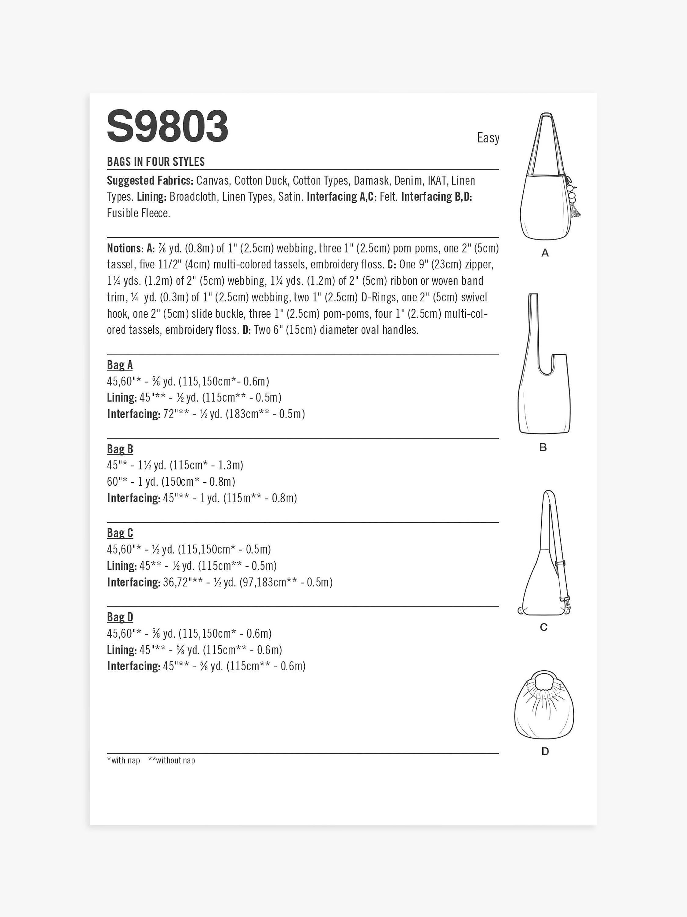 SimplicityBags Sewing Pattern, S9803