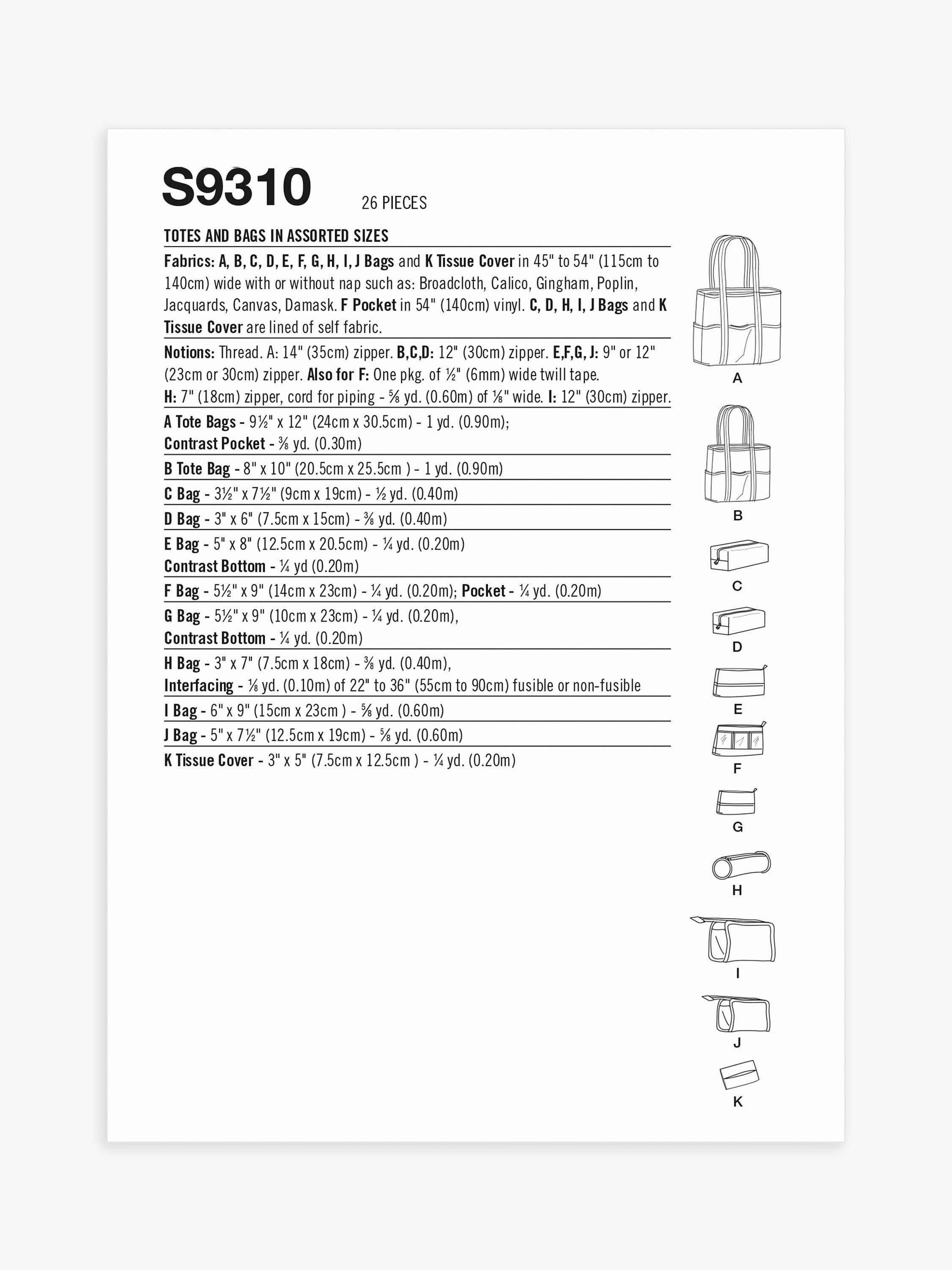 SimplicityBags Sewing Pattern, SS9310,OS