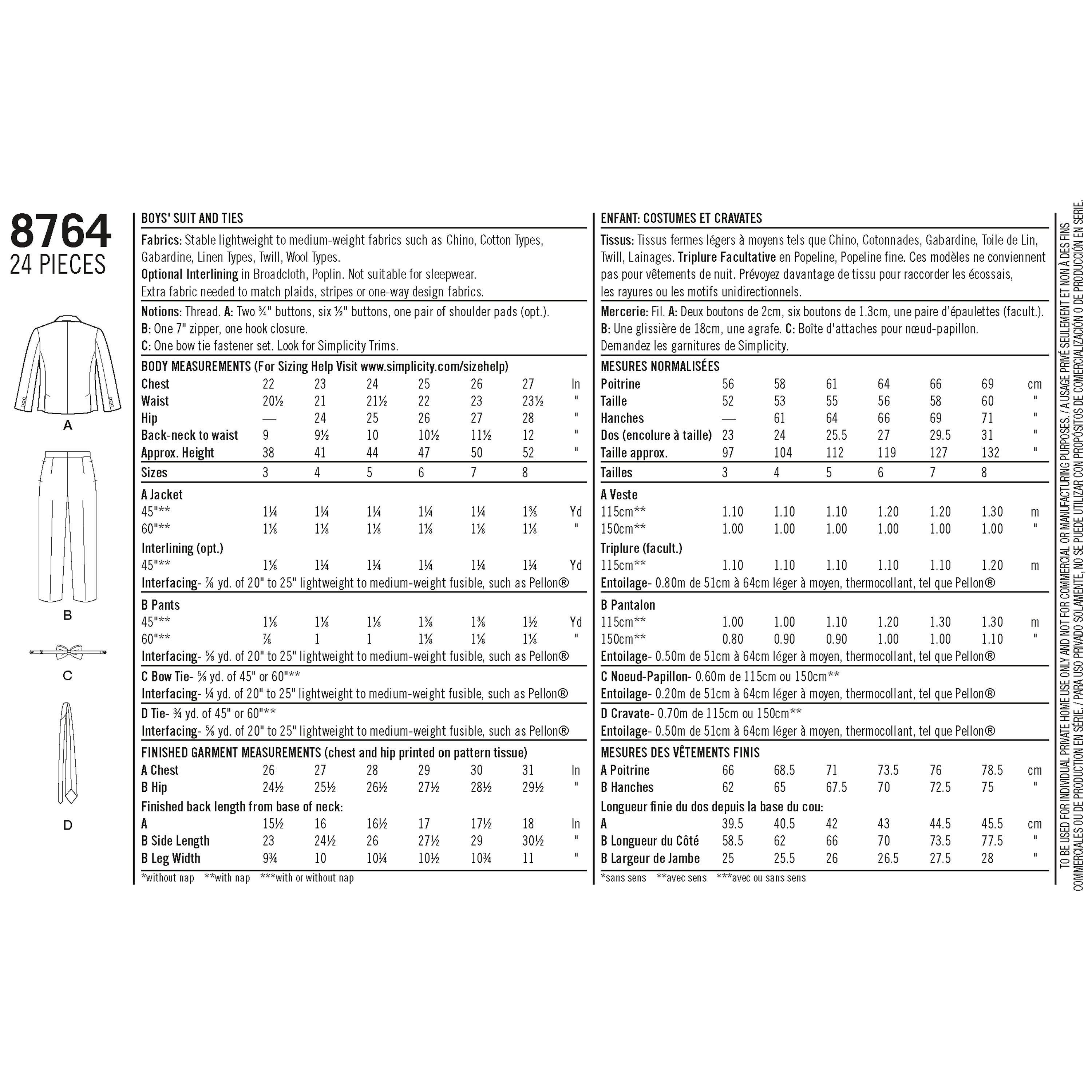 SimplicityBoys' Suit Ties Sewing Pattern, 8764