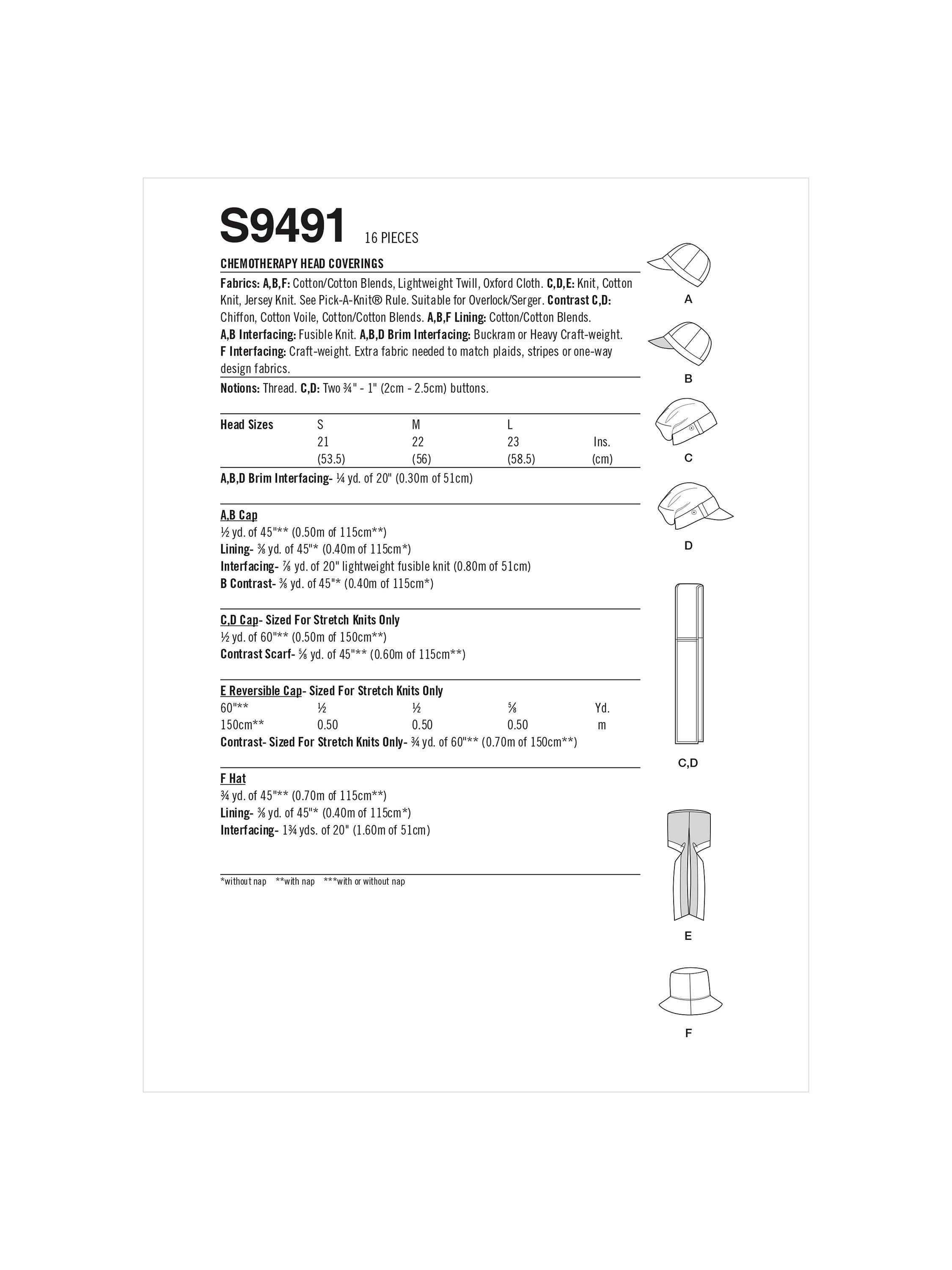 SimplicityChemotherapy Head Coverings Sewing Pattern, S9491, A