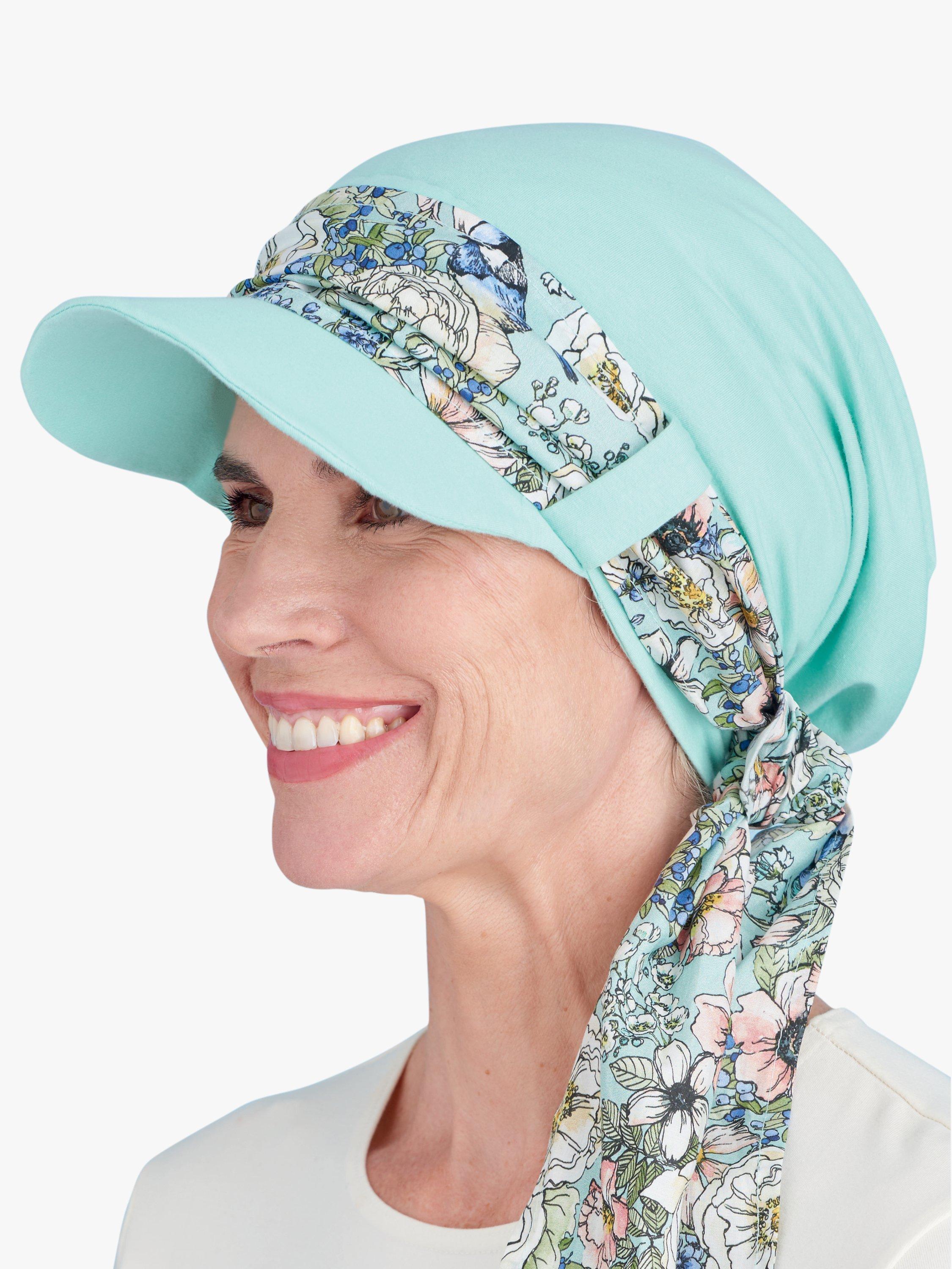 These casual and pretty lined chemo hats, offer full-head coverage to the natural hairline.