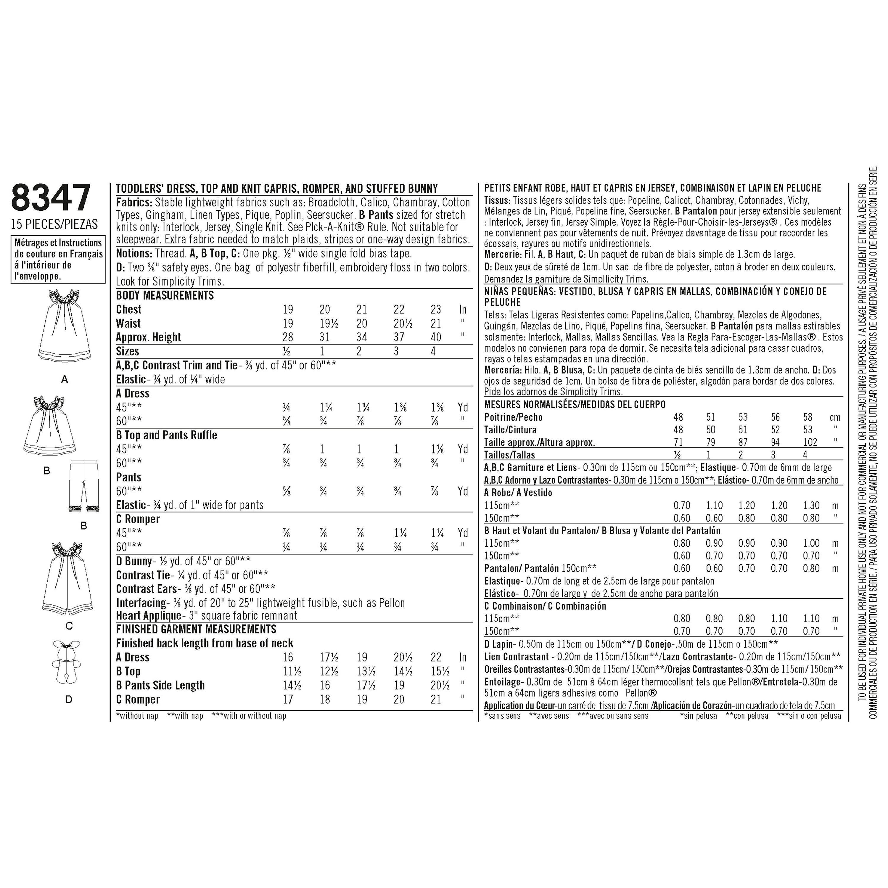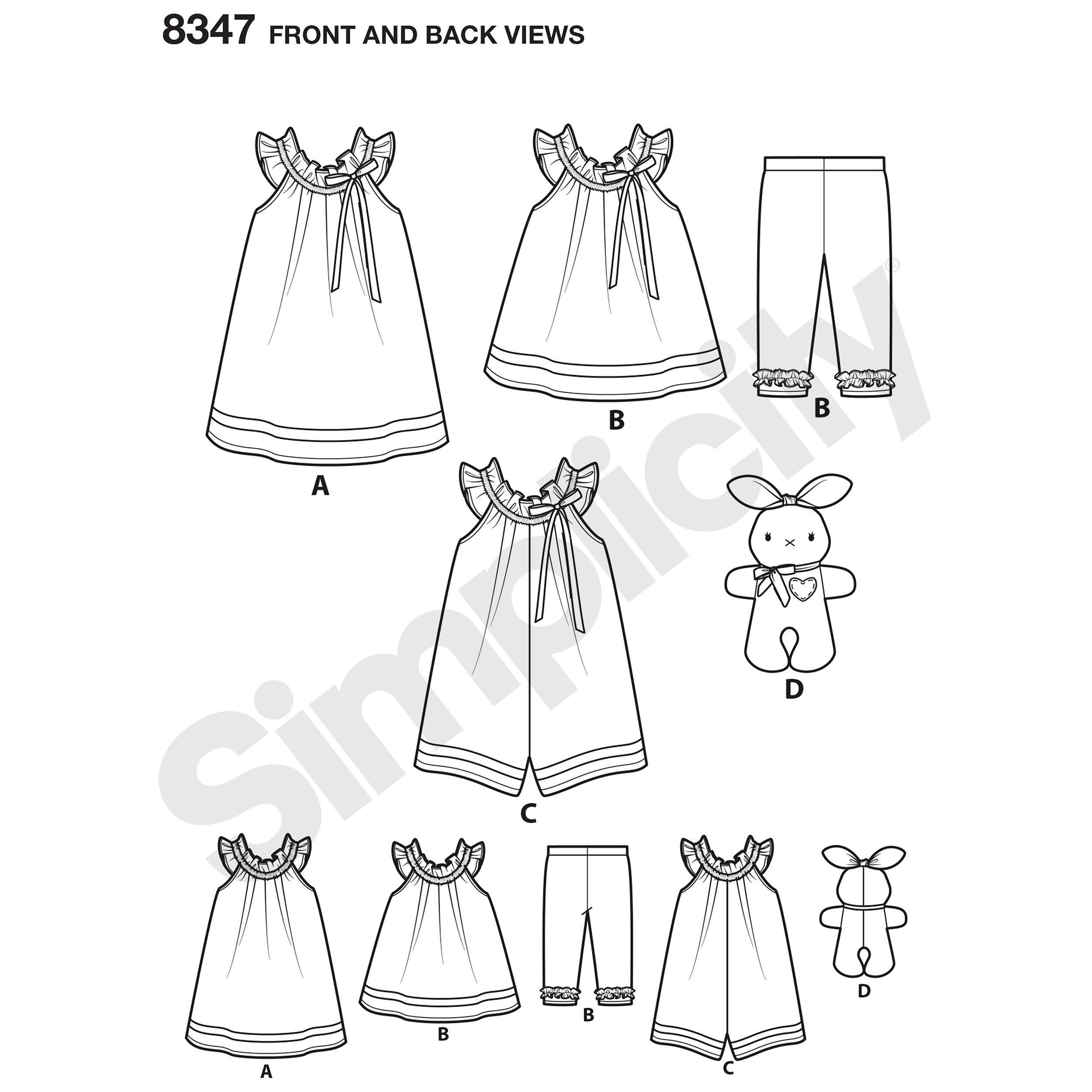 SimplicityChildren Clothes and Stuffed Bunny Sewing Pattern, 8347