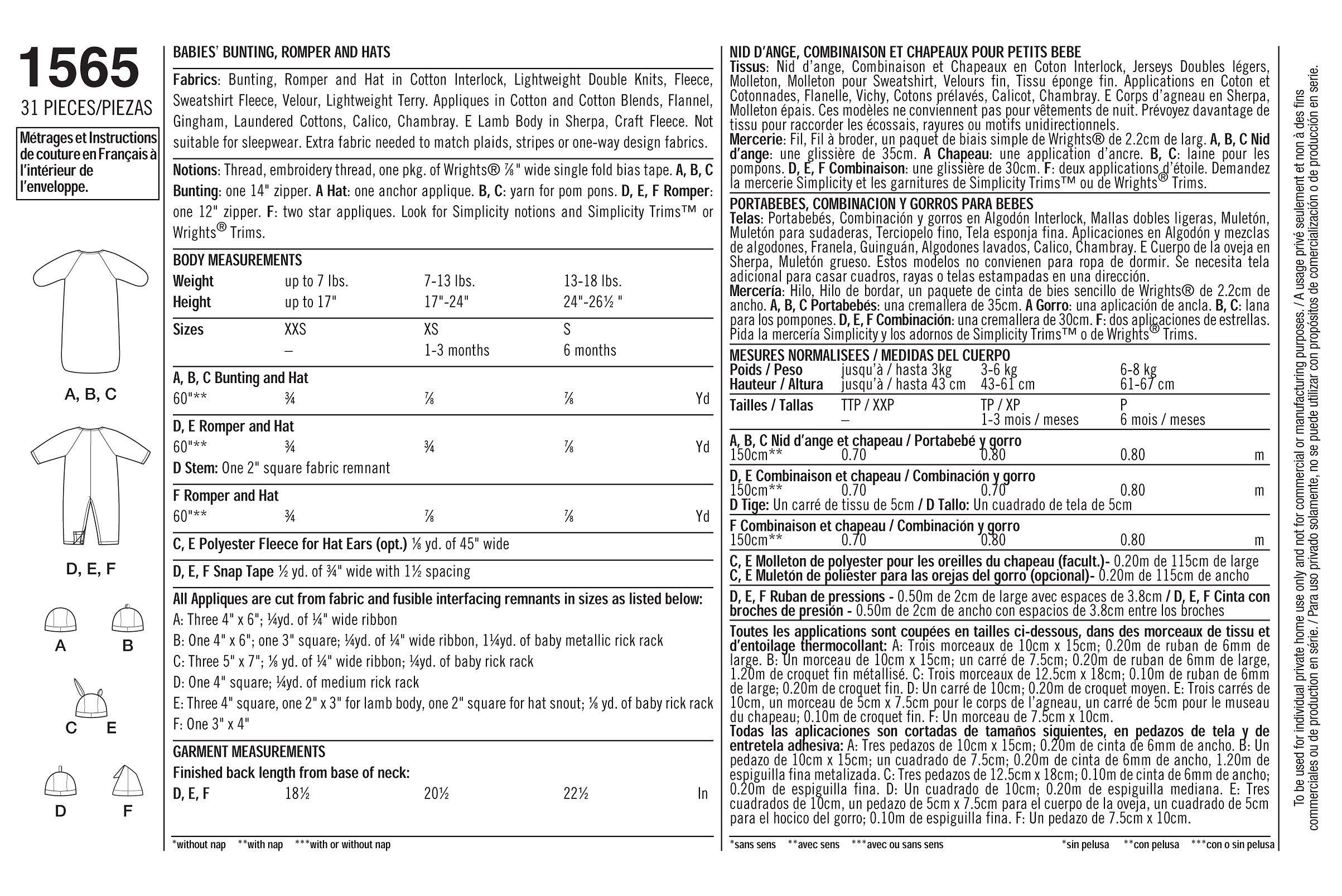 Warm your baby up with this easy-to-sew bunting, romper and hats sewing pattern. Sizes: XS (1-3 months), S (6 months).