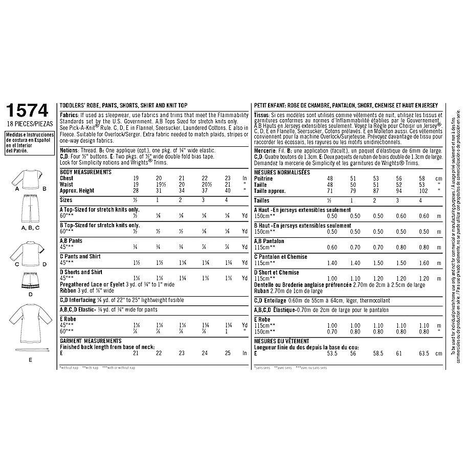 Simplicity sewing pattern for making an adorable robe, pants and knit tops for toddlers and children. Sizes: 6 months - 4 years.