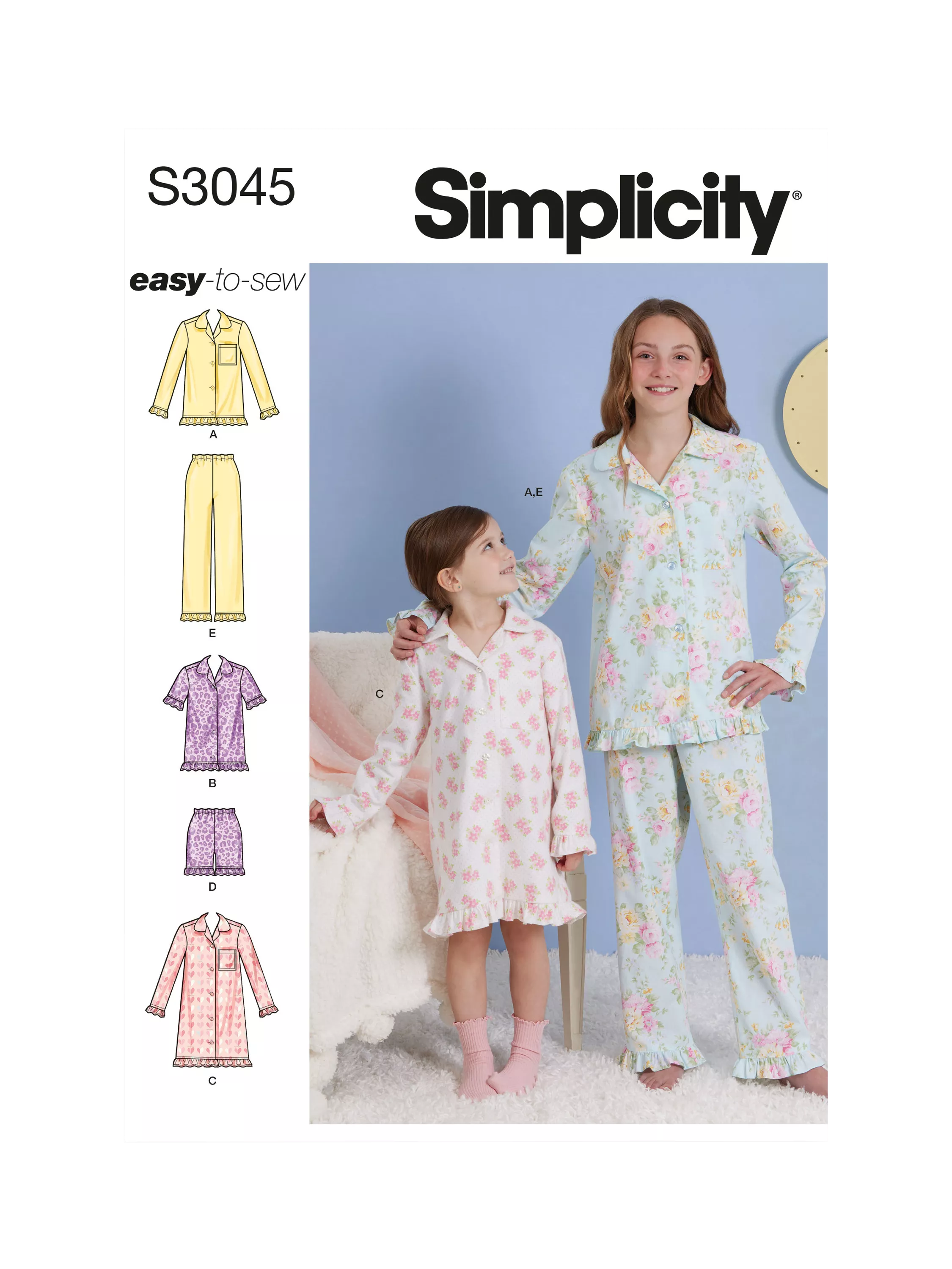 SimplicityChildren's and Girls' Lounge Tops, Gown, Shorts and Pants Sewing Pattern, S3045