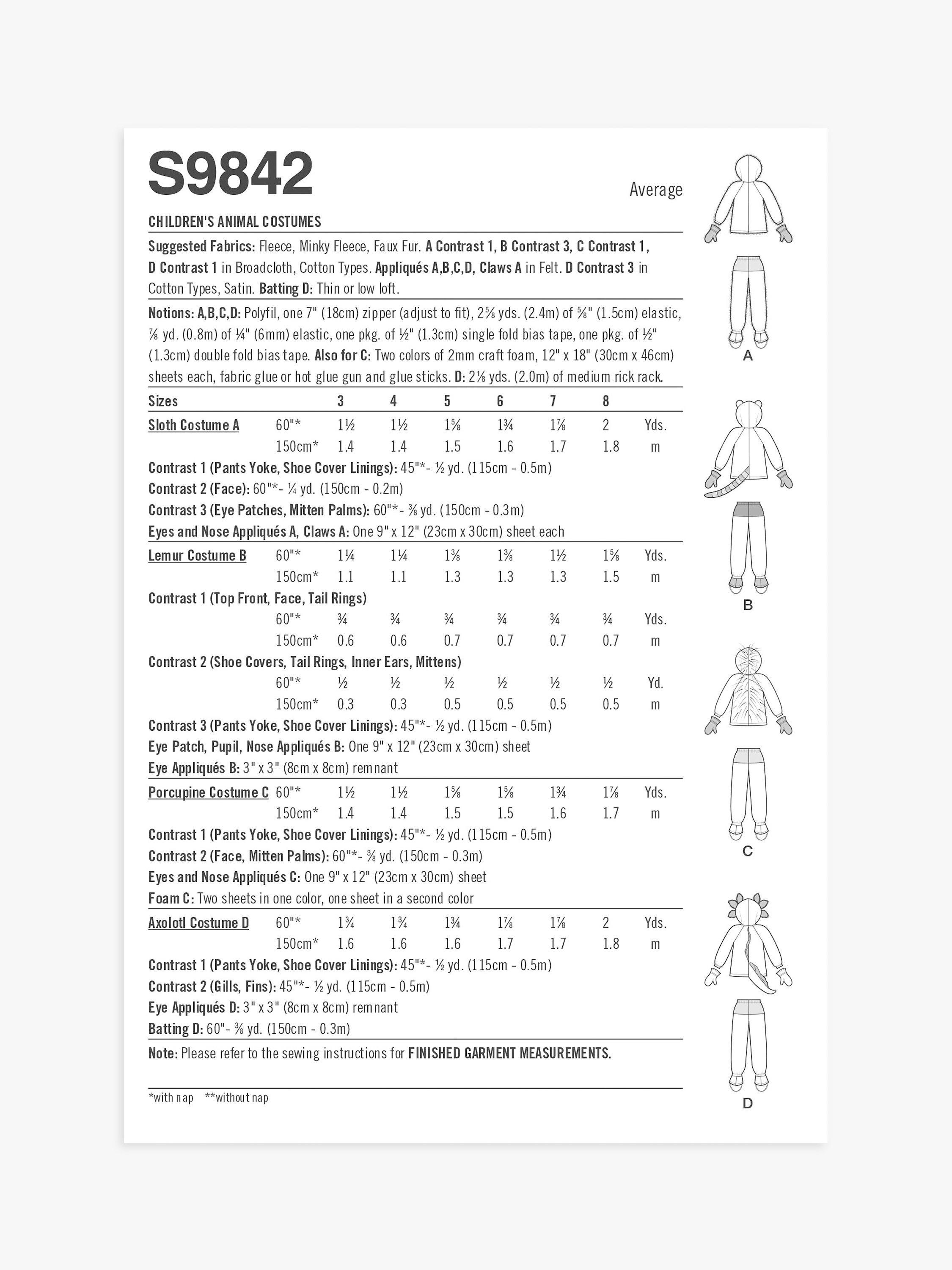 SimplicityChildren's Animal Costumes Sewing Pattern, S9842