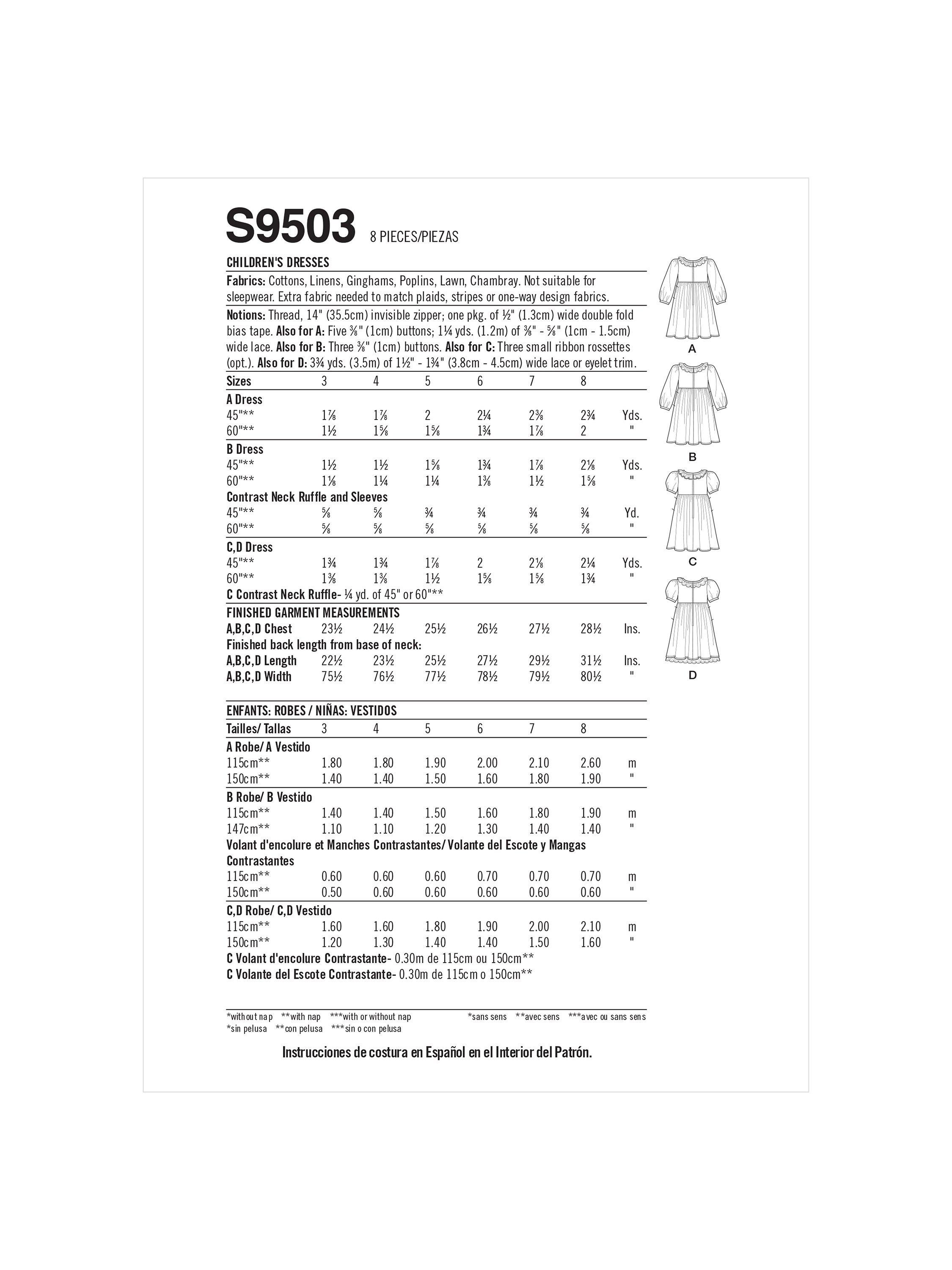 SimplicityChildren's Dresses Sewing Pattern, S9503, A