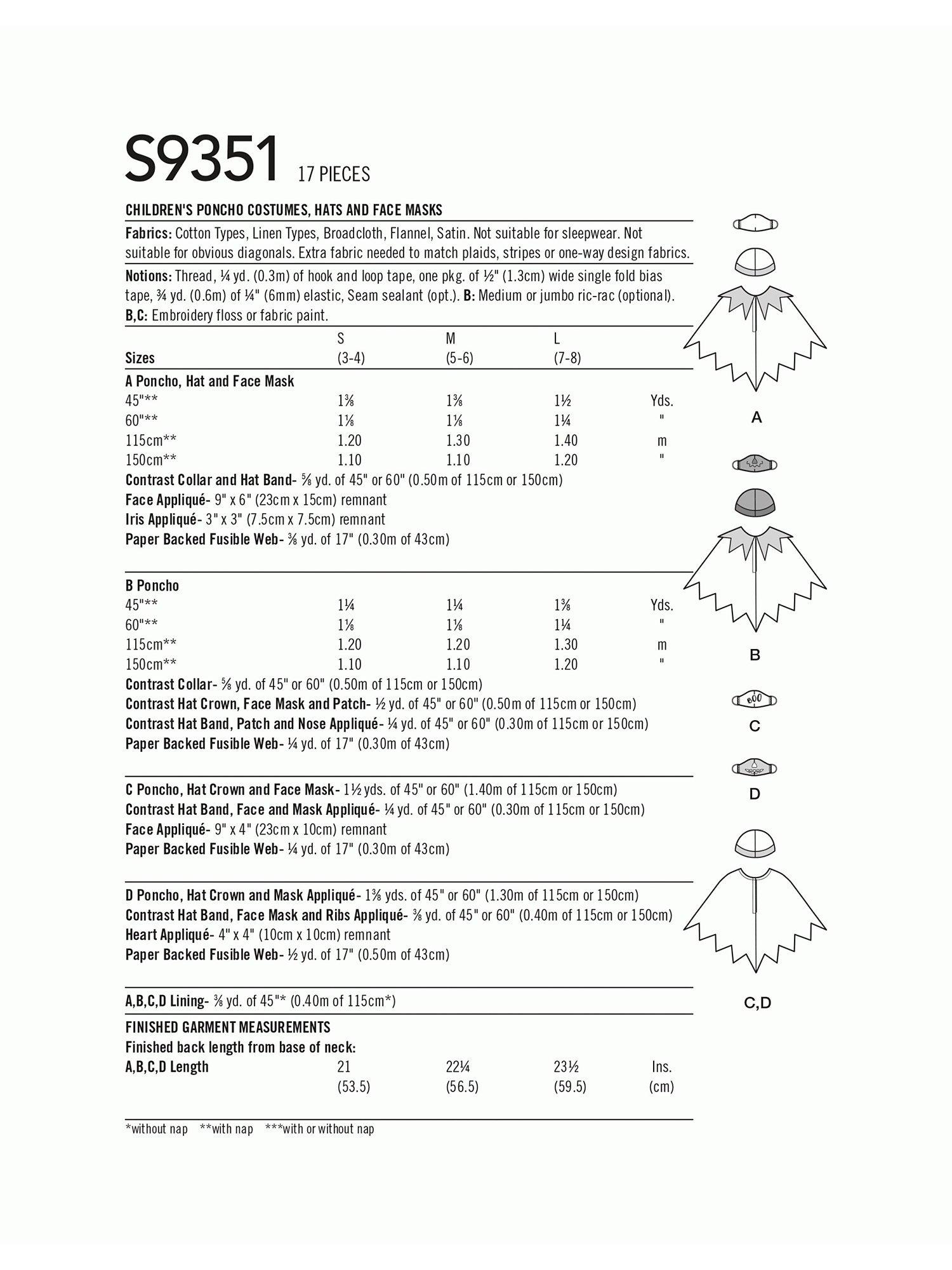 SimplicityChildren's Halloween Ponchos Sewing Pattern, S9351