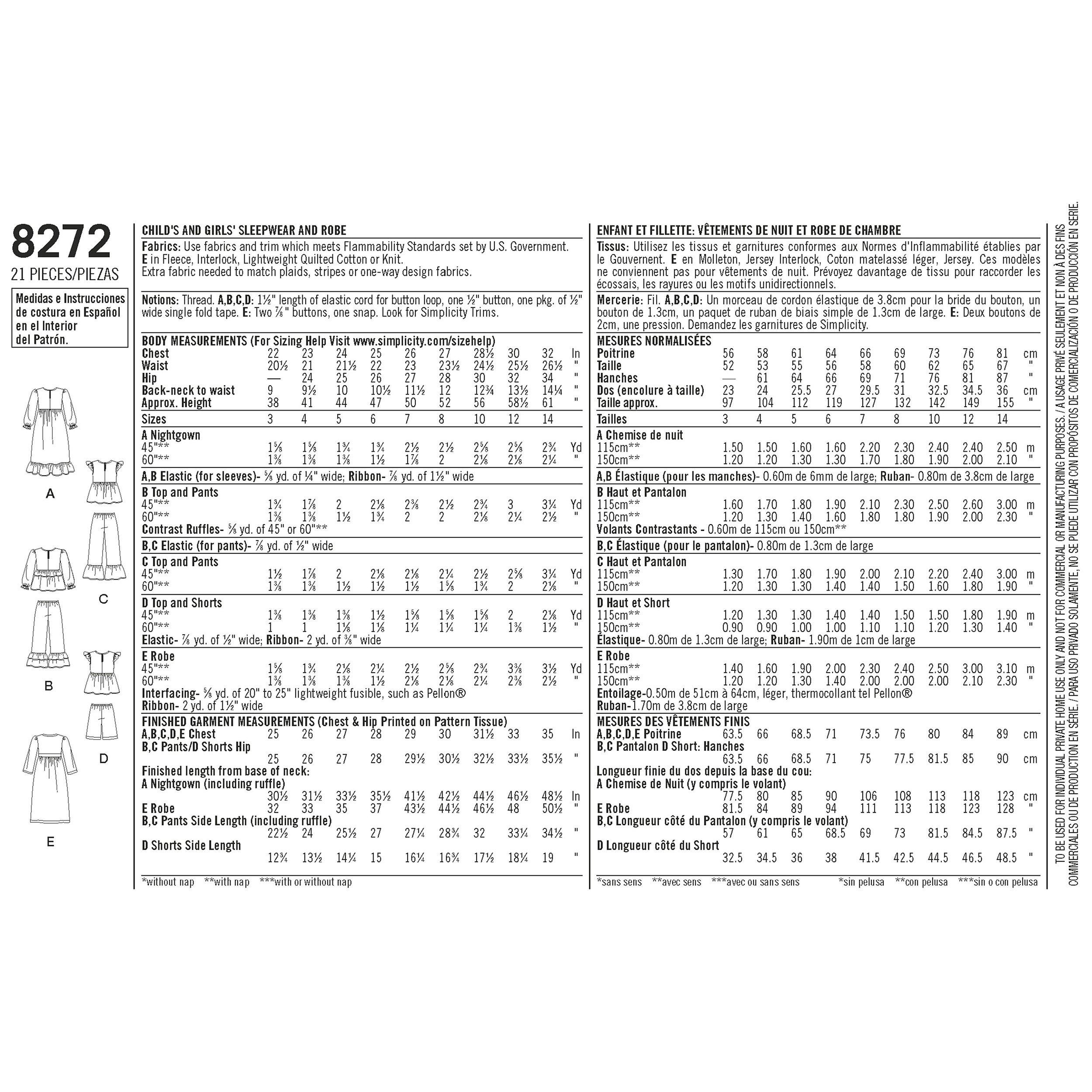SimplicityChildren's Sleepwear and Robe Sewing Pattern, 8272