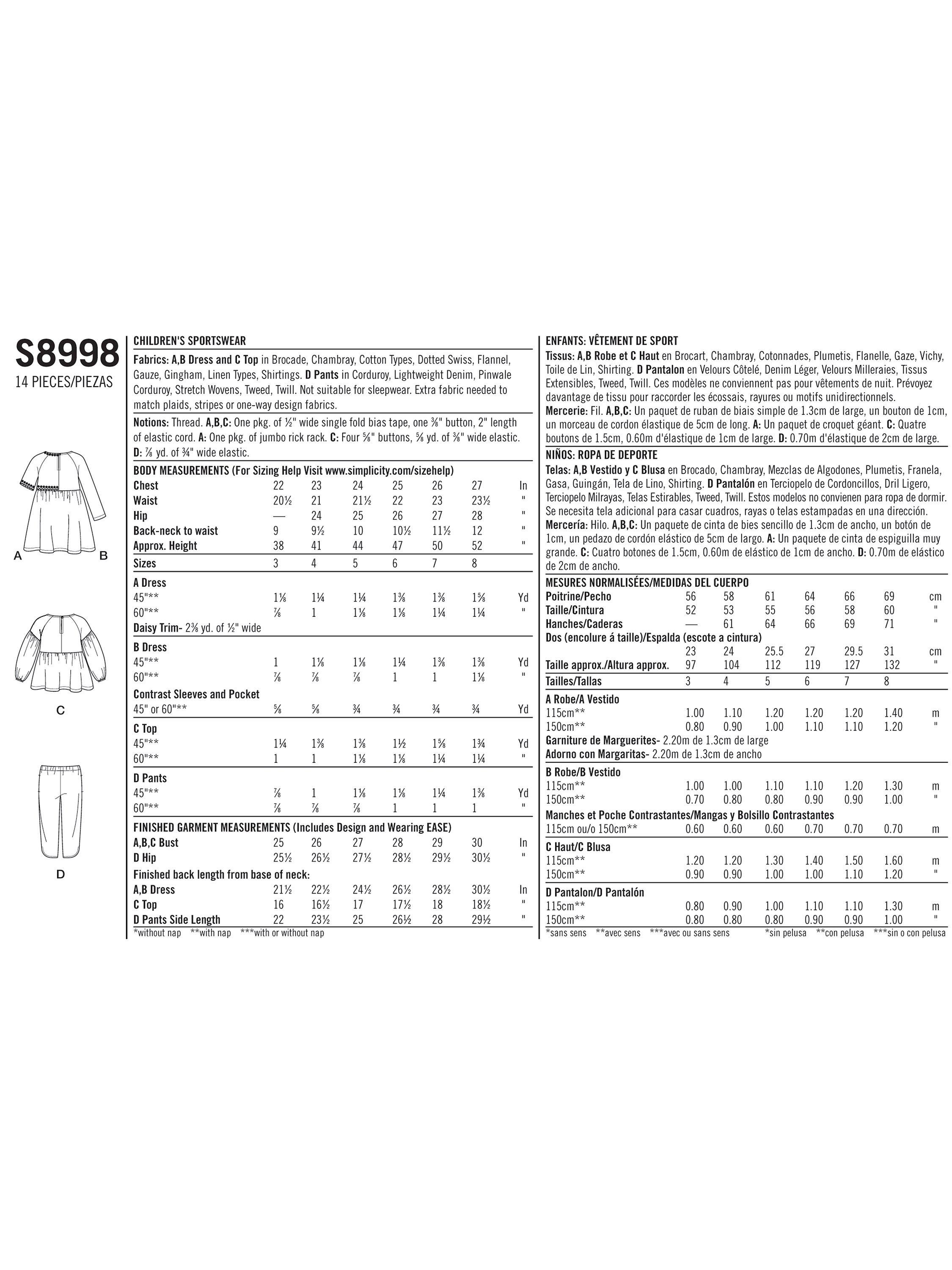 SimplicityChildren's Sportswear Sewing Pattern, S8998, A